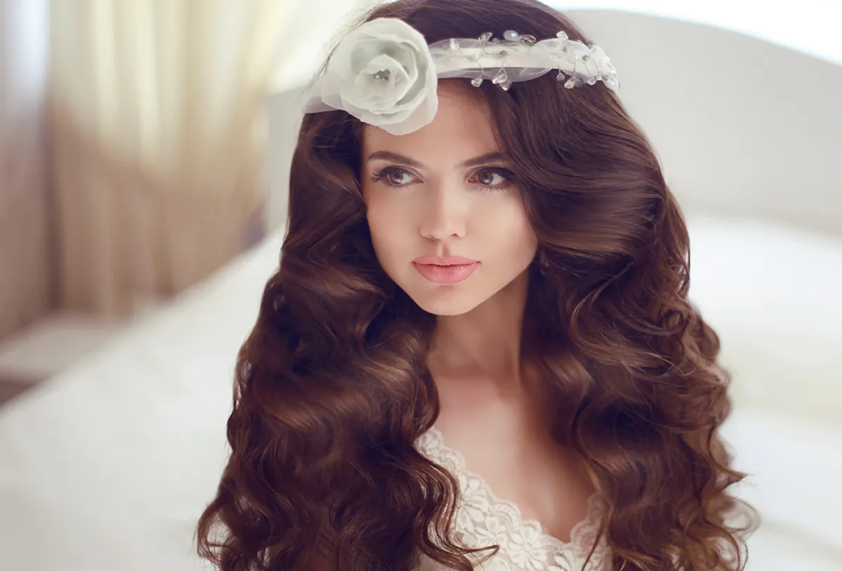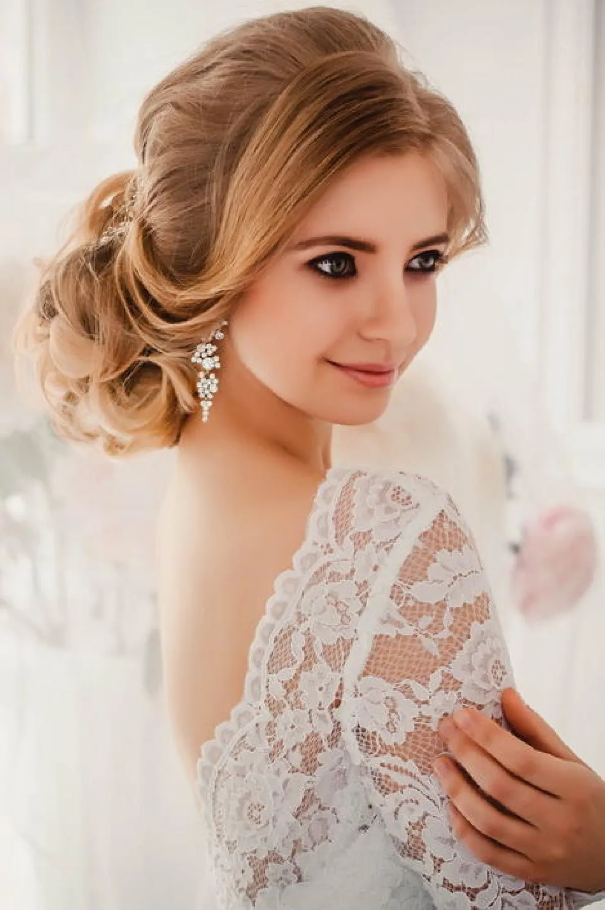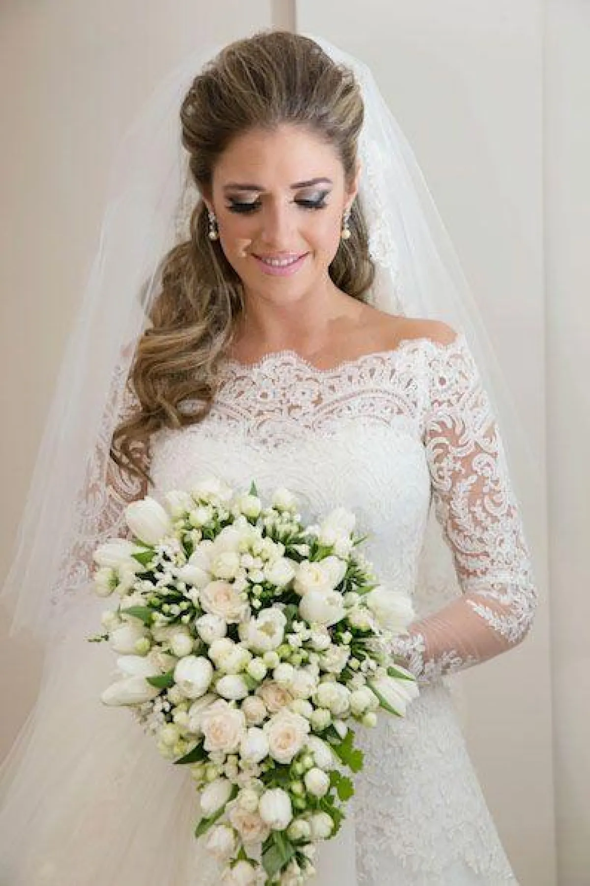 تسريحة ناعمة لعروس اختارت فستان زفاف بأكمام منسدلة
