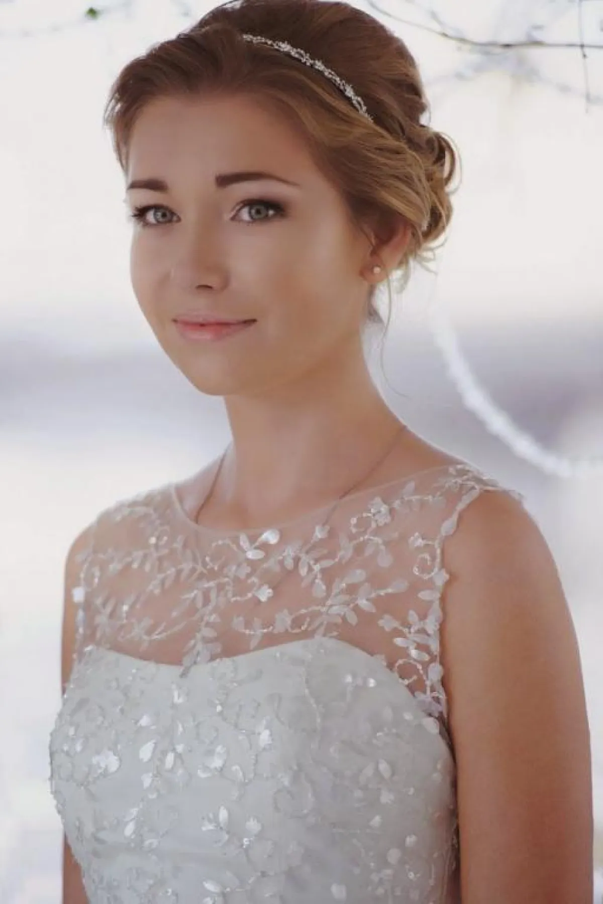تسريحة الشينيون لعروس اختارت فستان بياقة عالية