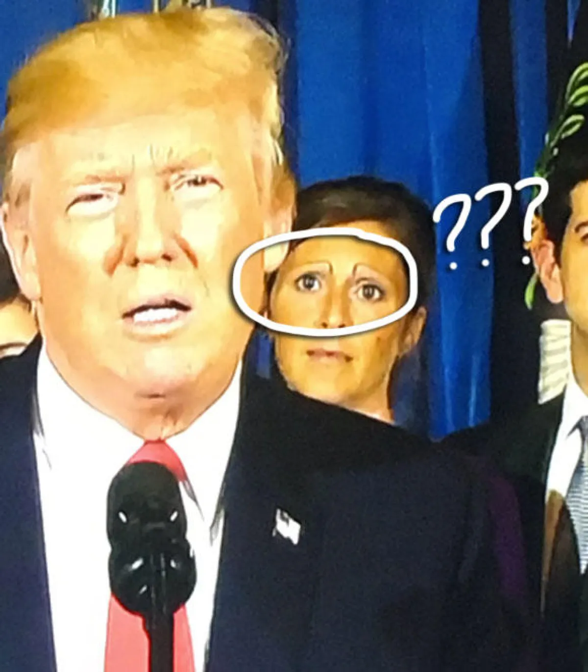 وتصدرت السيدة الصحف العالمية، التي أجمعت أنّ خطاب الرئيس لم يجذب انتباه المتابعين، بل حاجبي السيدة التي تقف في الخلفية إلى يساره.
