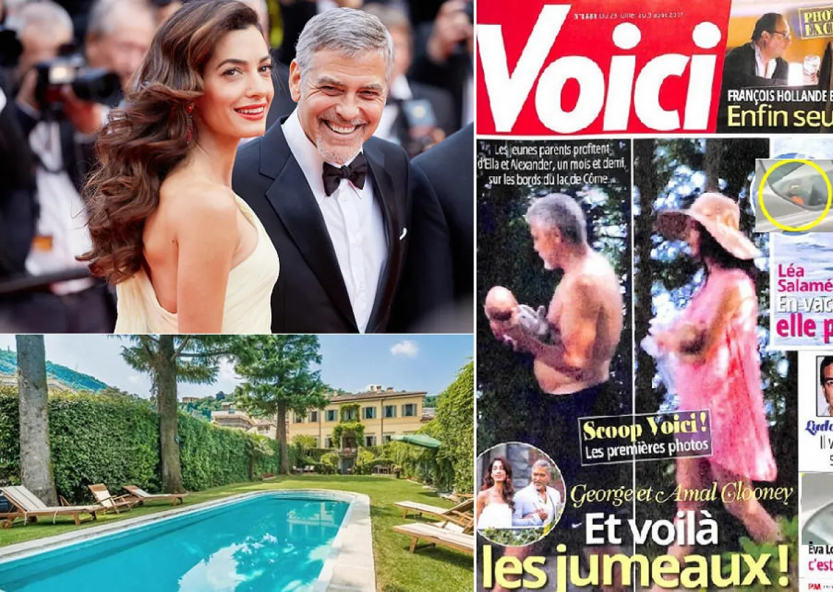 نشرت مجلة "Voici" الفرنسية، صورًا للنجم العالمي جورج كلوني George Clooney وزوجته المحامية أمل علم الدين، بملابس السباحة، وكل منهما يحمل أحد التوأمين.