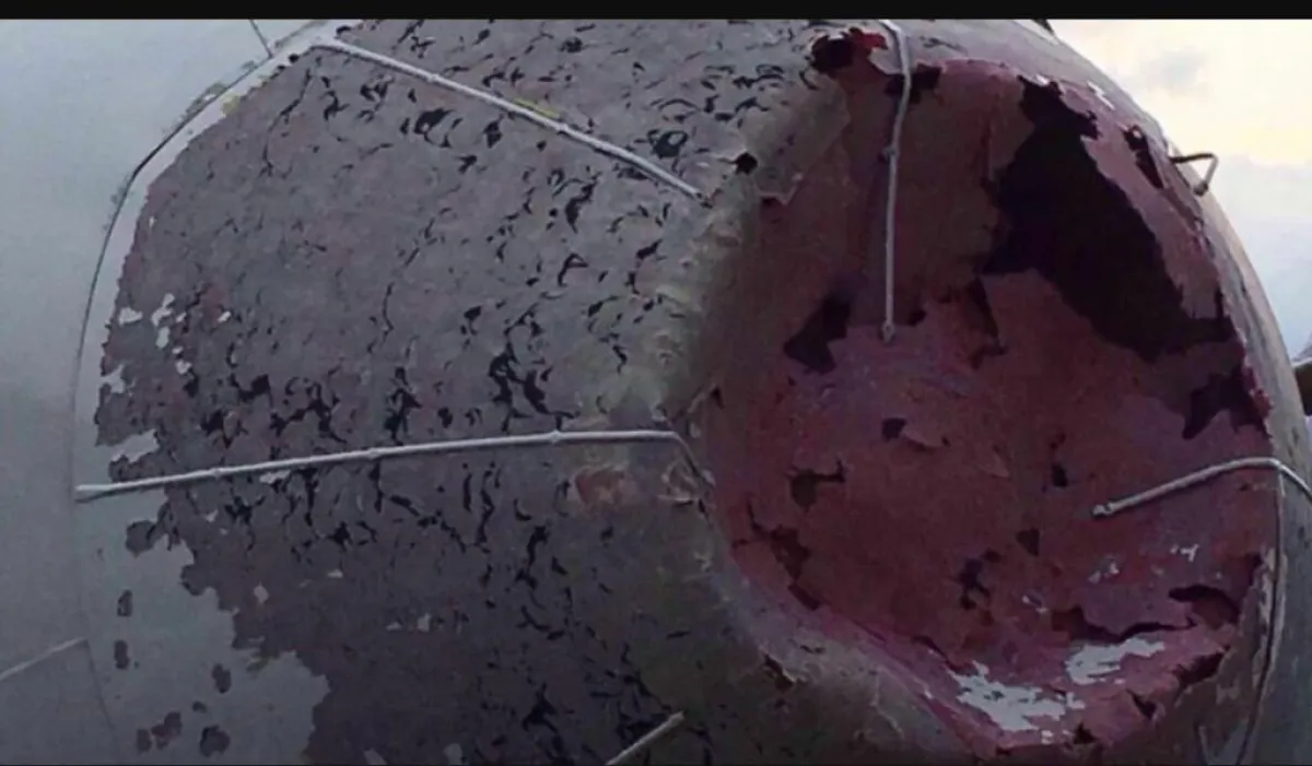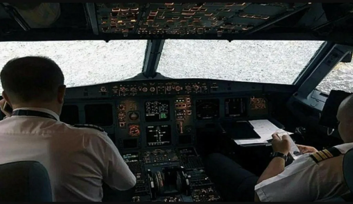 قام طيار بهبوط اضطراري يوقف الأنفاس رغم عدم قدرته على الرؤية بعد أن حطم البرد العملاق الزجاج الأمامي لطائرته النفاثة.