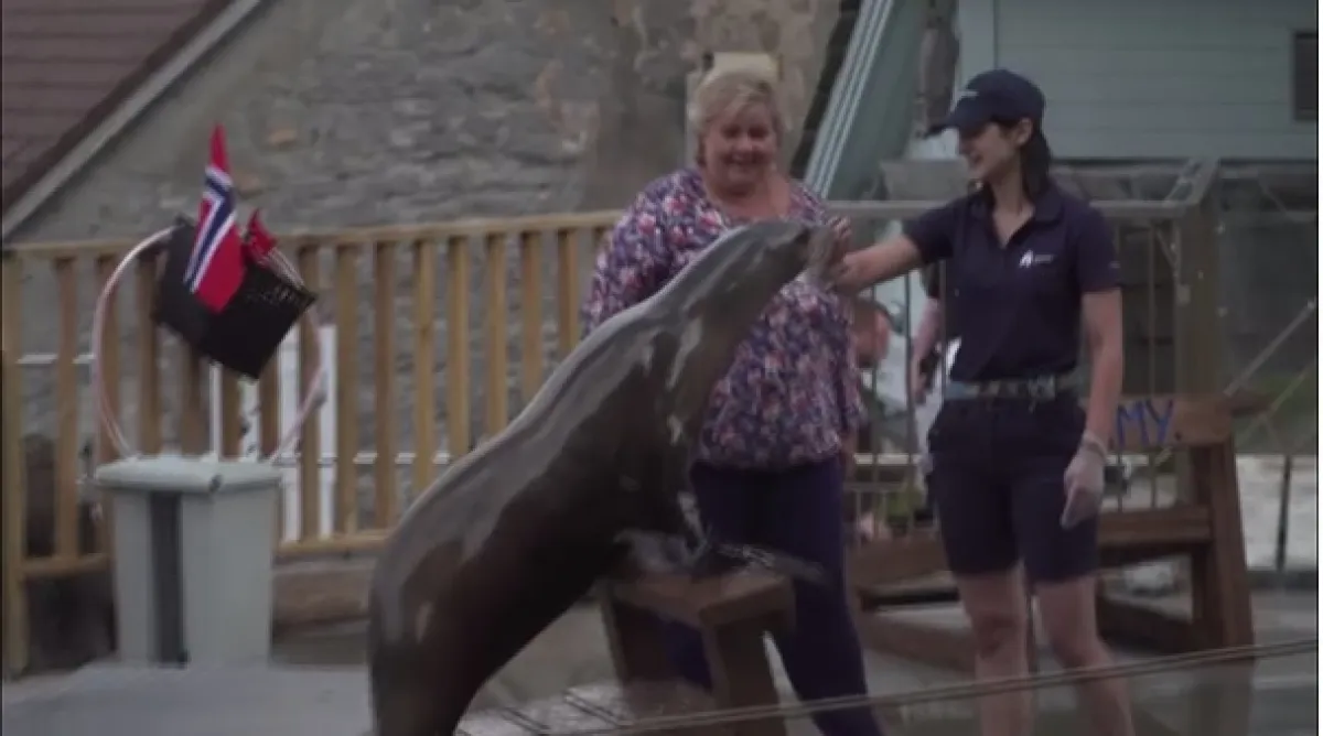 فاجأت رئيسة الوزراء النرويجية، إيرنا سولبيرغ، مواطنيها مؤخرًا، بقيامها بحركات ترويضية لحيوان أسد البحر، وهو يشبه حيوان الفقمة الشهير في هذا البلد الإسكندنافي.