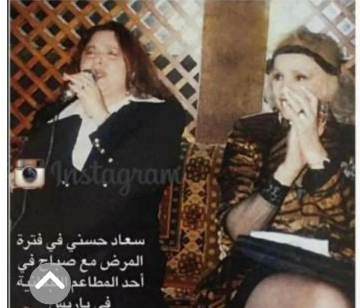 وبدت سعاد حسني في الصورة وهي تغنّي، وصباح تصفق لها، خلال وجودهما في أحد المطاعم اللبنانية في باريس.