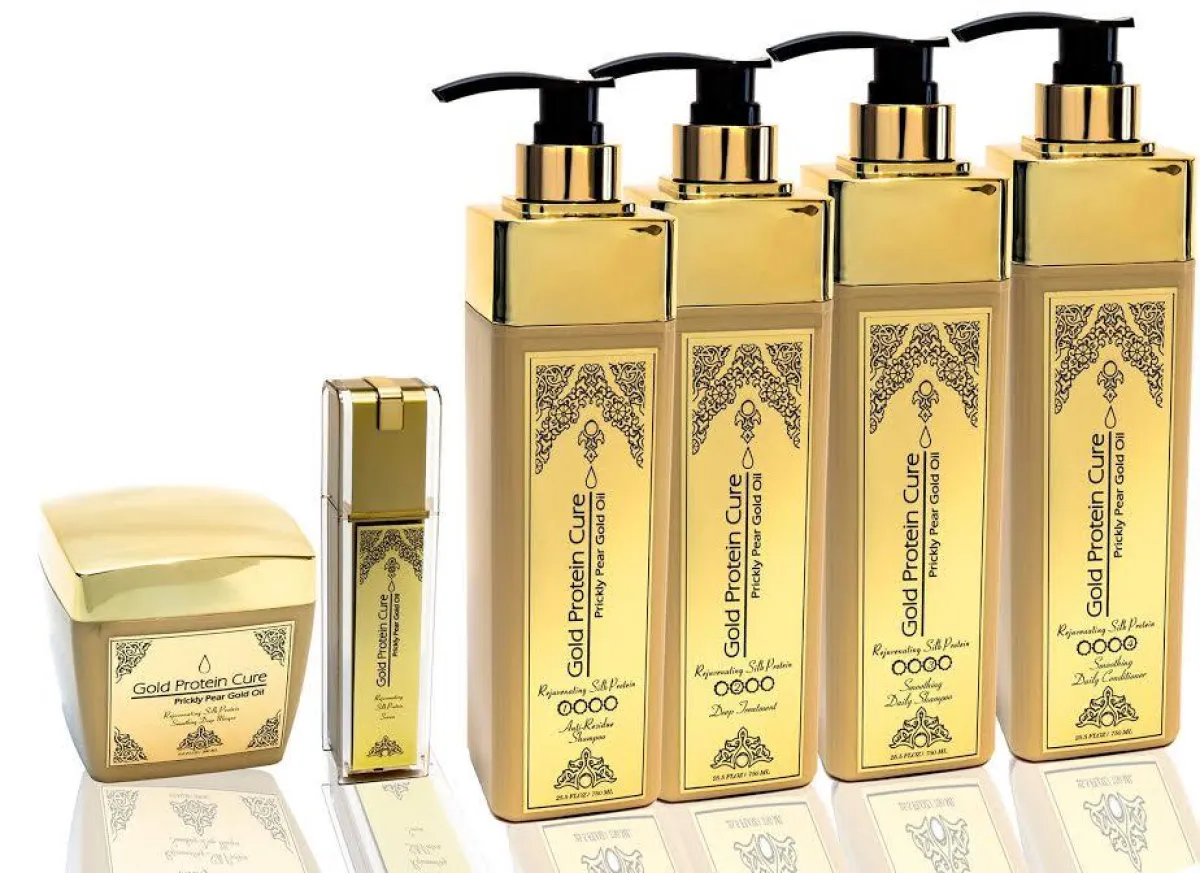 تعدّ مجموعة جولد بروتين كيور للعناية بالشعر من المنتجات الثورية والتى طوّرها قسم الأبحاث المتطوّرة من شركة Beauty Cosmetica Usa، إن المزيج الرائع من بروتين الكافيار وزيت التين الشوكي وزيت الأرغان يمنح الشعر نعومة خيالية ولمعان مذهل لفترة طويلة.