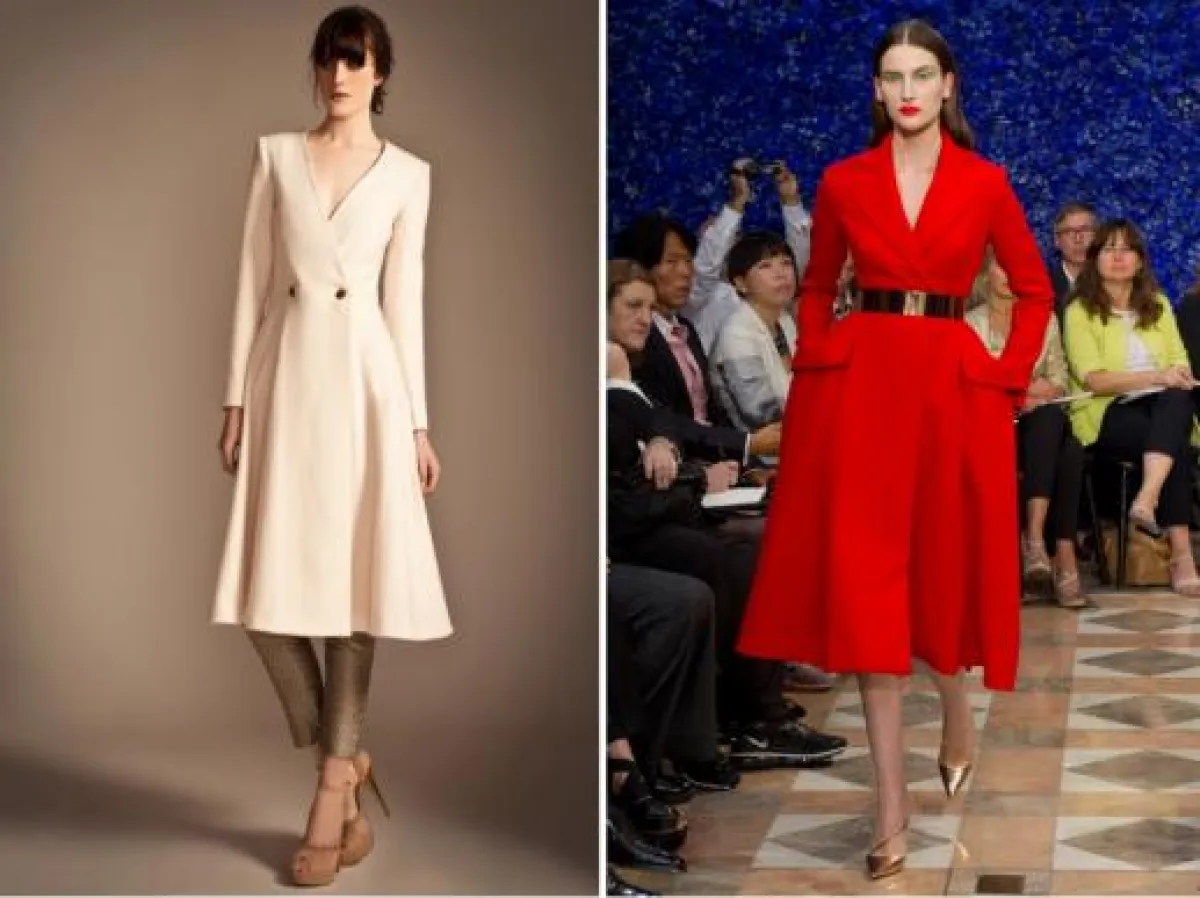 3- عرفت دار "ديور" Dior بالفساتين الجميلة بقصّة المعطف، وقد شاهدنا عدداً منها في مجموعة الأزياء الراقية لخريف وشتاء 2012, شاهدنا نفس الفكرة في مجموعة "تمبرلي لندن" Temperley London لما قبل خريف 2013 قبل أيام معدودة.