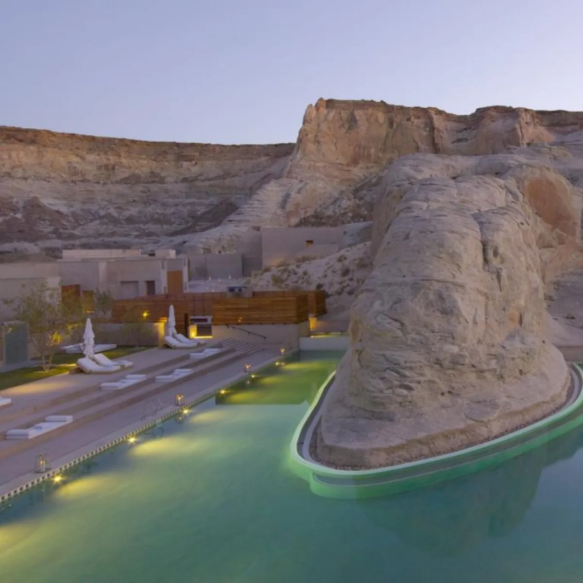 يختبئ في أودية يوتا، في وادٍ من الصخور والكثبان الضخمة والهضاب، على حمّام سباحة بعمق 11،000 قدم مربع ، ساخن بدرجة 86 درجة على مدار السنة، وحوض استحمام ساخن آخر، يبرز من امام حجر رملي قديم بعمر 165،000 سنة. الموقع بحد ذاته يتمتع بسكينة وينأى عن العالم، وخصوصًا عند الاستلقاء على سرير نهاري ضخم، يبدو أنه يطفو على الماء.