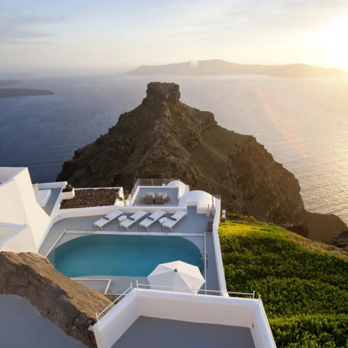 تم تجديد هذا الفندق "البوتيك" الحالم الأبيض، المطل على كالديرا الشهيرة في سانتوريني مؤخرًا في مجمله، باستثناء جزء واحد: البركة اللا متناهية. كما توجد حمّامات غطس خاصة أمام بعض الأجنحة ، ومناظر غروب الشمس على بحر إيجة خيالية الجمال.