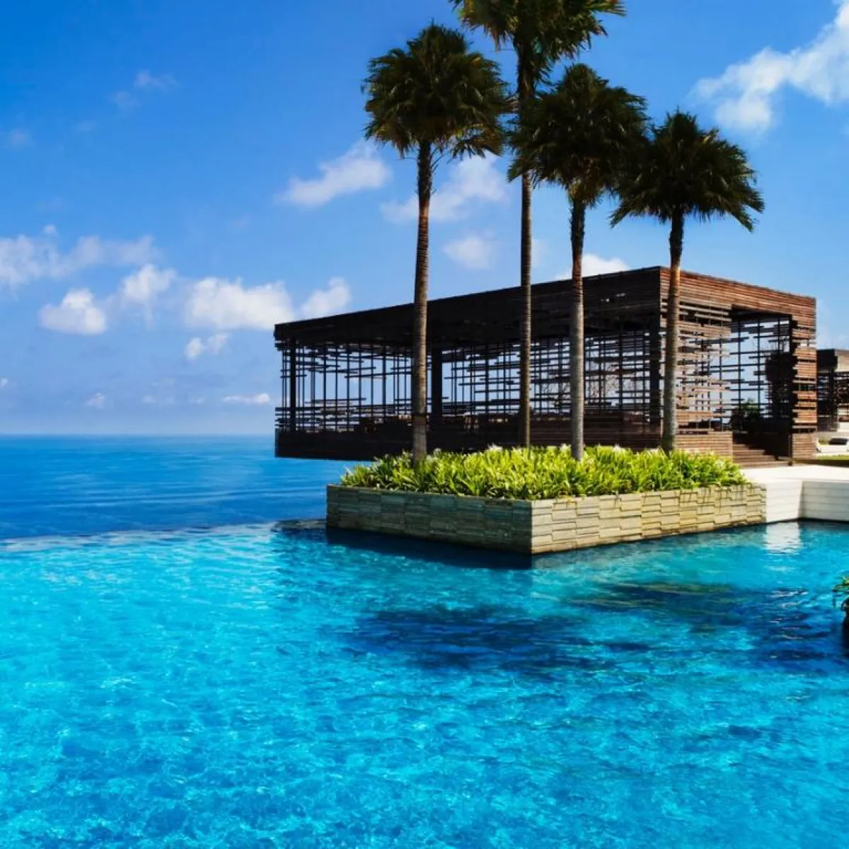 قد يكون شهر العسل فكرة مشوقة بما فيها الكفاية، ولكنّ حمّام السباحة الرائع في هذا المنتجع في أولواتو في بالي، سيضيف أكثر من ذلك. على ارتفاع أكثر من 325 قدمًا، على قمة جبل بالقرب من نقطة ركوب الأمواج الأكثر شهرة في الجزيرة، ويحتوي كوخًا للغروب معلقة من جانب احد الأماكن الخلابة في العالم، لاحتساء الشراب، وممارسة اليوغا، أو قضاء وقت مع شريك حياتك.