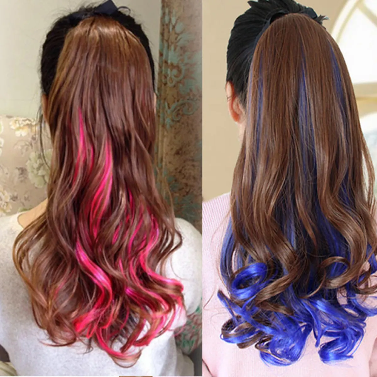4- ذيل حصان ملون: كل ما عليك القيام به هو تجميع شعرك في المنتصف على شكل ذيل حصان، وتمشيطه جيداً حتى يظهر شعرك سلساً وجذاباً، ثم ضعي بعض ألوان الشعر على خصلات شعرك المنسدل من ذيل الحصان.
