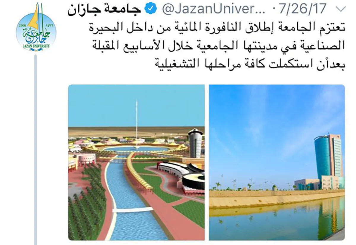 جامعة جازان تنشئ نافورة مائية بـ170 مليون ريال
