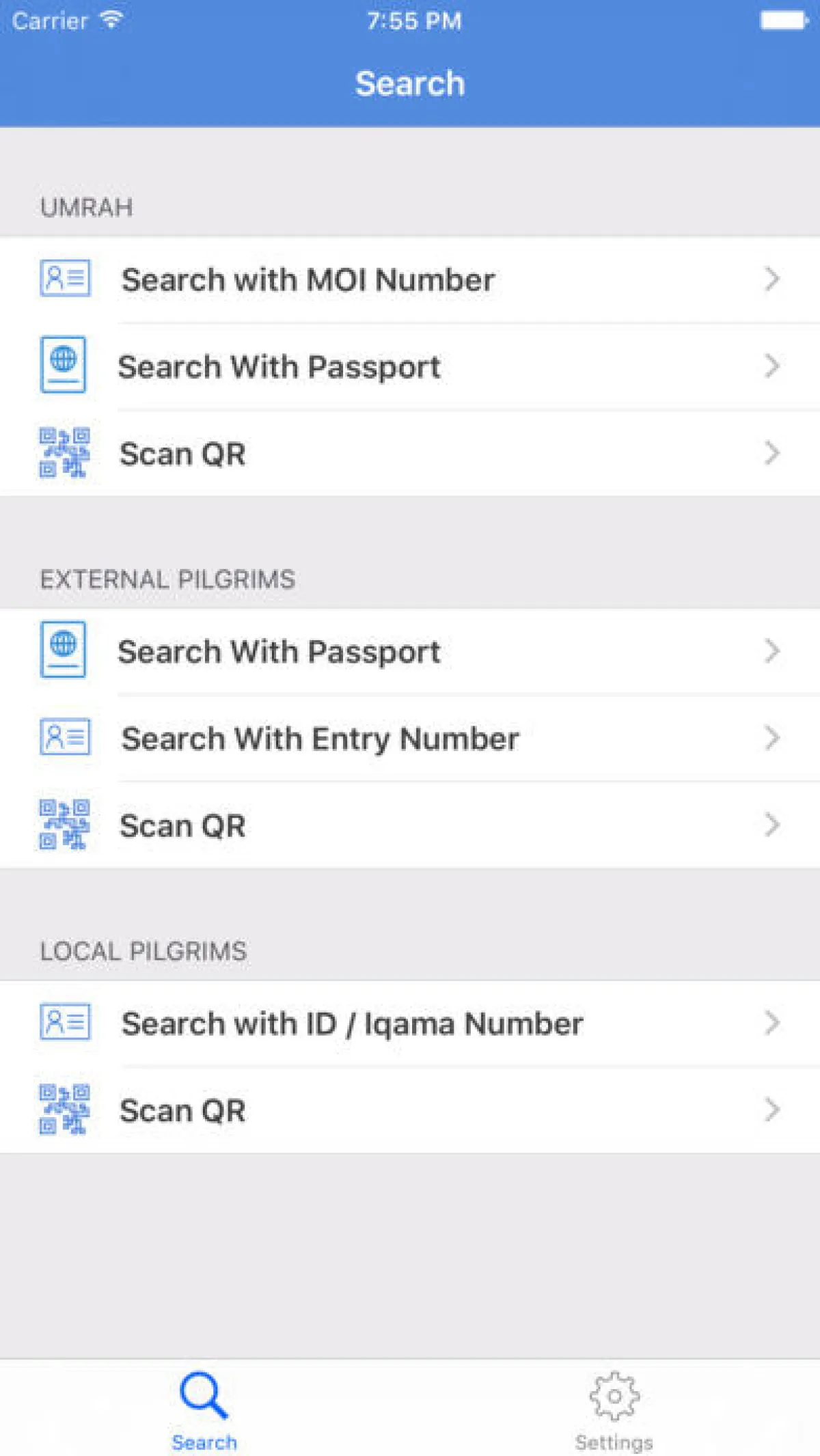 وفرت وزارة الحج السعوديَّة خدمات الحج الإلكترونيَّة على الأجهزة النقالة، وذلك لتمكين الحجاج من البحث عن: