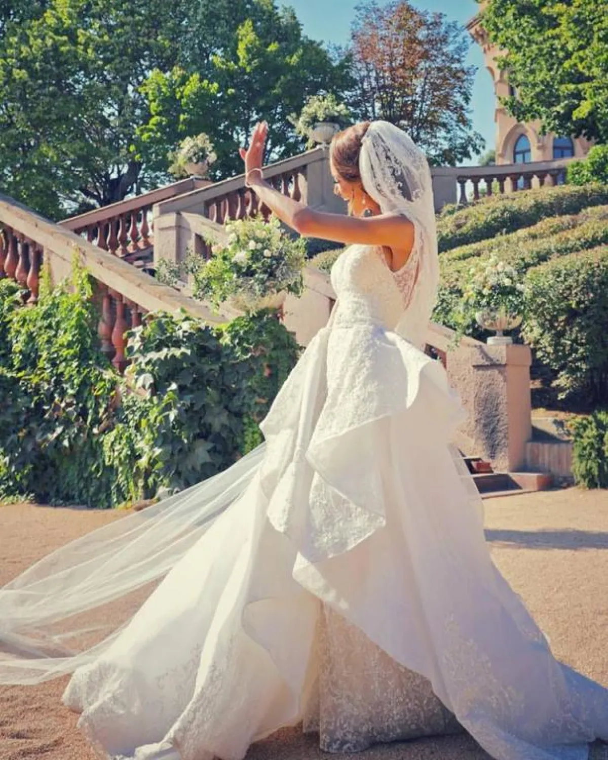 تألقت العروس بفستان زفاف من تصميم زهير مراد