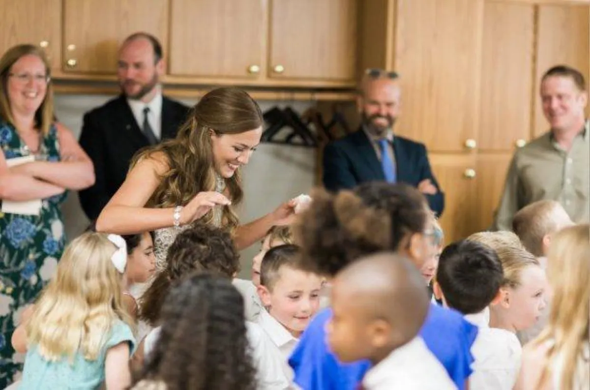 طبقاً لموقع صحيفة "مترو" البريطانية، فقد قامت معلمة تدعي "مارييل سلاجر كيلر" 25 عاماً، بعمل رائع عندما دعت 20 طفلاً من تلاميذها بالمدرسة لحفل زفافها، وقد ارتدت الفتيات فساتين تشبه فستان العروس وحملن الورود. وقالت العروس إن الأطفال أضفوا على حفل الزفاف سحراً خاصاً.