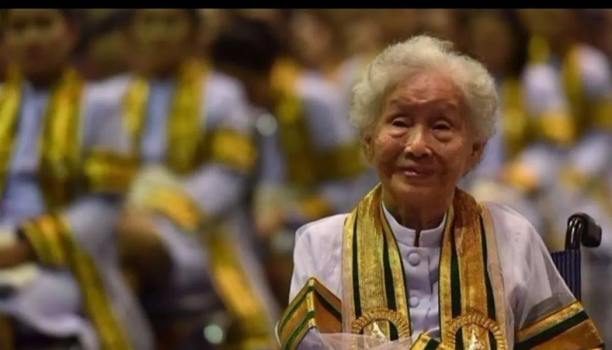 أصبحت سيدة تبلغ من العمر "91 عاماً" أكبر شخص سناً يتخرج من الجامعة في تايلاند، الأربعاء، حيث تسلمت درجة البكالوريوس من الملك ماها فاجيرالونجكورن.