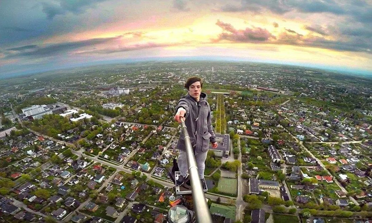 المصوّر إرفين بونكار اتخذ صورًا بواسطة عصا الـ"سيلفي" من النقطة الأعلى في برج التلفزيون في "تاملين" بإستونيا. يرتفع البرج 192 مترًا، وقد شيّد في سنة 1957.