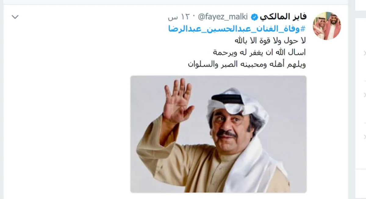 نعى الفنان وسفير الإنسانية فايز المالكي، داعيًا للفقيد: "لا حول ولا قوة إلّا بالله