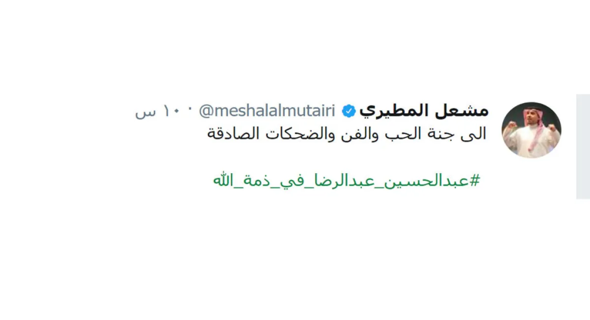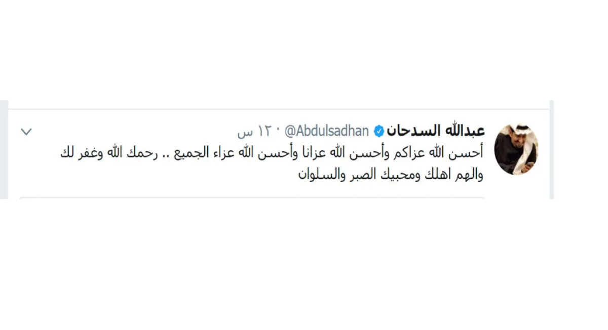 فيما نعى الفنان السدحان زميل المهنة قائلًا: " أحسن الله عزاءكم وأحسن الله عزاءنا وأحسن الله عزاء الجميع .. رحمك الله وغفر لك وألهم أهلك ومحبيك الصبر والسلوان