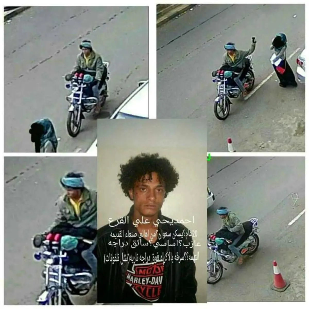 وقال مصدرٌ أمني إن أفراداً من الشرطة تمكنوا من القبض على المدعو أحمد يحيى القرع (20 عاماً) بتهمة السرقة بالإكراه، مشيراً إلى أن الشاب (السارق) الذي يقود دراجة نارية مر من جانب فتاة كانت تمشي في شارع عام وفي يدها جوالها الخاص فانتشله منها بالإكراه وفر، لكن الشرطة لاحقته وقبضت عليه.