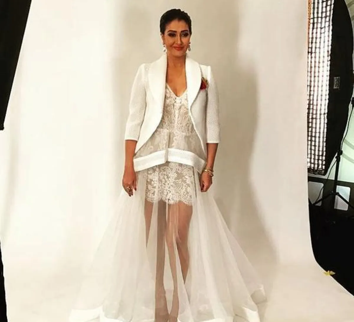 في حين استبدلت النجمة ميريام فارس فستان الدانتيل بفستان من الترتر، ولم تستغنِ عن القماش الشفاف الذي كشف عن صدرها مع أناقته.