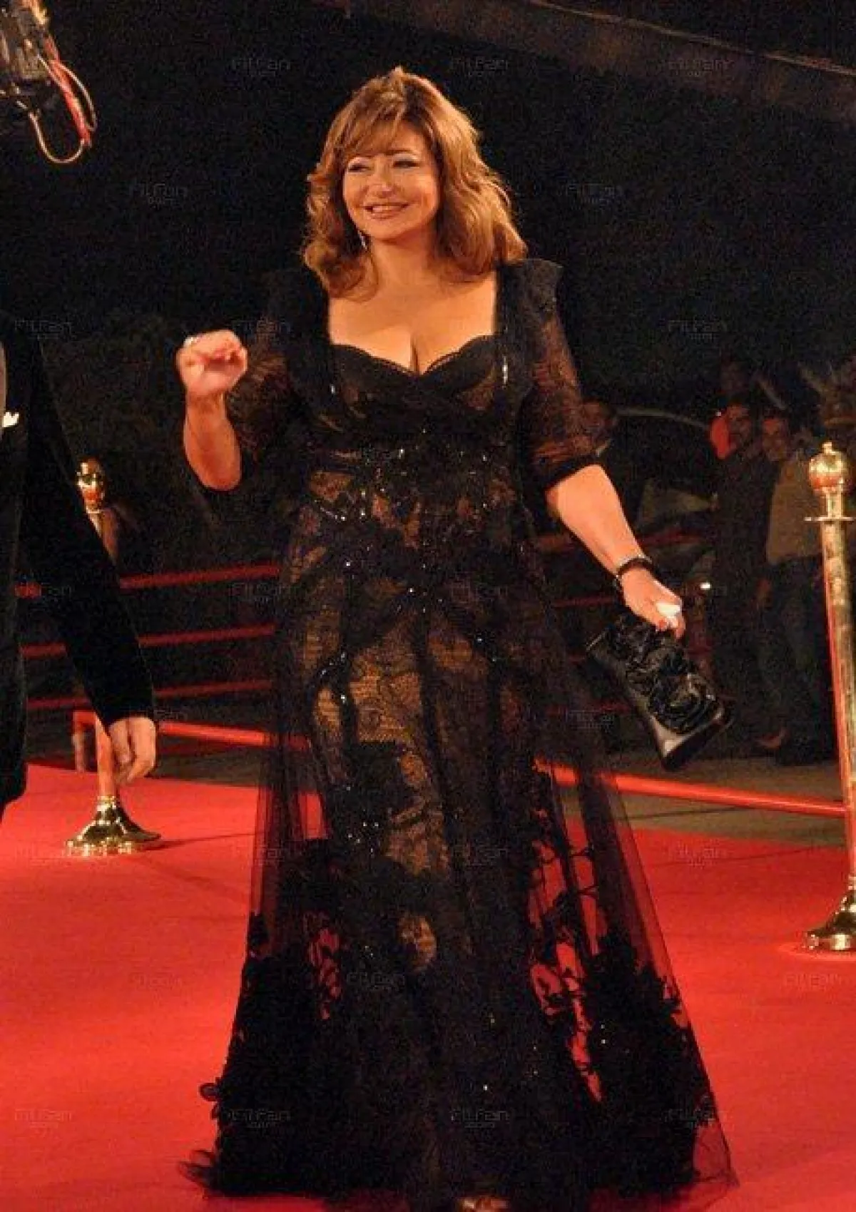 مصريًّا النجمة غادة عبد الرازق هي الأكثر جرأة في اطلالاتها، وهنا تظهر بفستان من الدانتيل والغيبور، يكشف بعض نواحي جسدها.