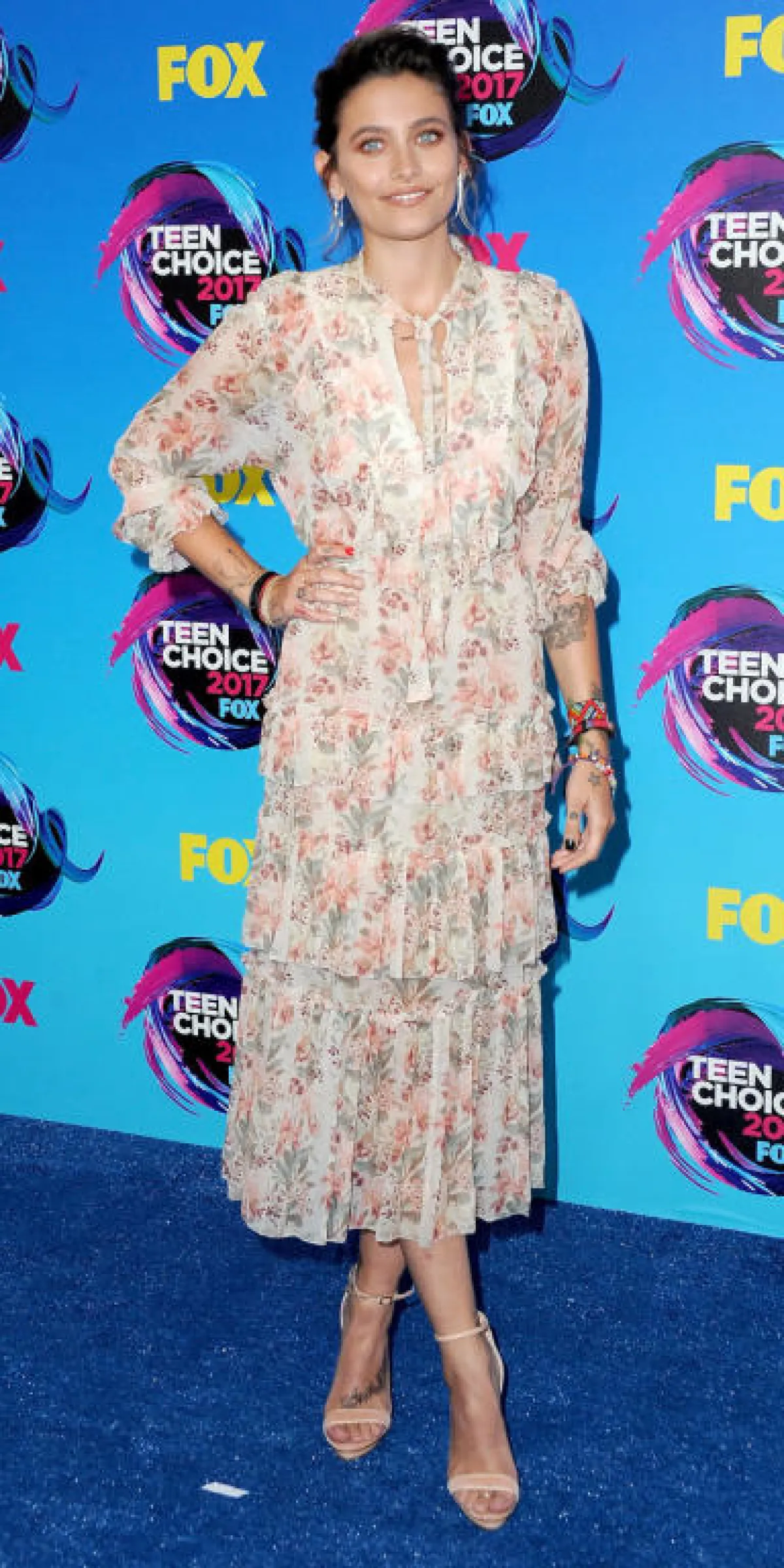 لكنّ جمال وأناقة "باريس جاكسون" Paris Jackson ابنة النجم الراحل "مايكل جاكسون" Michael Jackson كانا لافتين، فقد أصبحت شابة ومكتملة الأنوثة، واختارت لهذه المناسبة فستانًا ناعمًا مزيّنًا بالكشكش من "زيمرمان" Zimmermann نسقته مع صندل بكعب عالٍ باللون البيج، وأكملت اللوك باكسسوارات شبابية.
