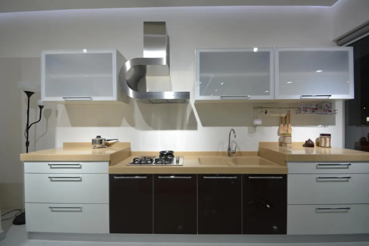 الـ"بي في سي" والـ"ألومينيوم" والخشب، هي الخامات الأساسيّة المُستخدمة في صنع المطابخ الـ"مودرن". الـ"بي في سي" مضادة للماء بنسبة مائة في المائة والحريق والبكتيريا. والـ"ألومينيوم" مضادة للماء أيضًا، وتمتاز بأنّها خفيفة الوزن، وبتعدّد ألوانها.