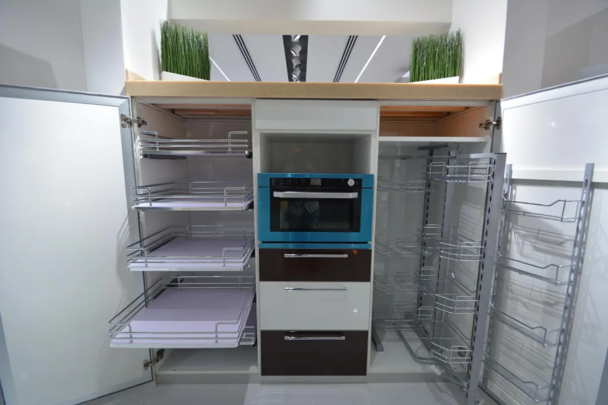 في المطابخ الـ"مودرن"، إنّ البساطة تصف الـ"ديكورات"، ولا سيما الخزائن، التي من المفضّل أن تزوّد بخاصيّة الإغلاق الذاتي، على أن تكون العلوية من بينها تفتح للأعلى. وغالبًا ما تكون الخزائن مزوّدة بأرفف عدّة، لتوفير المساحة الكافية، مع استغلال الزوايا للتخزين.