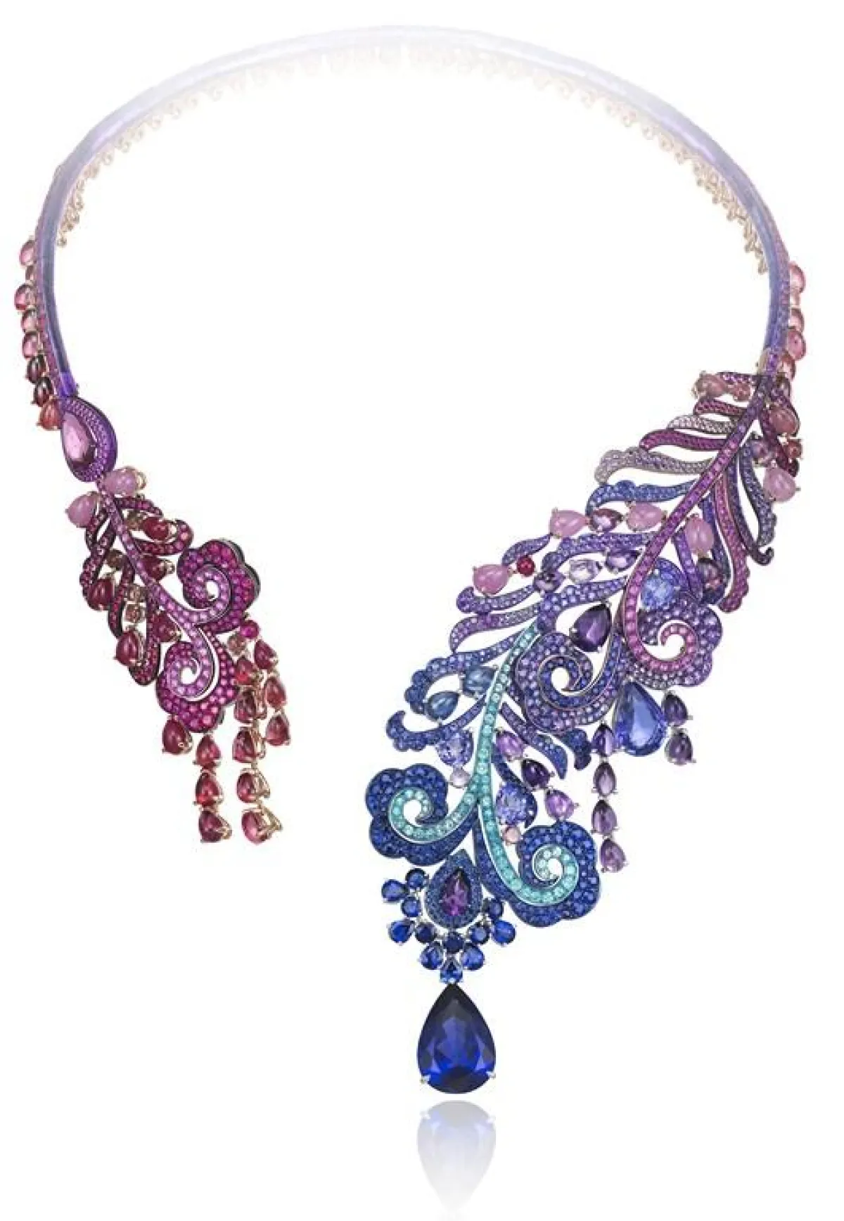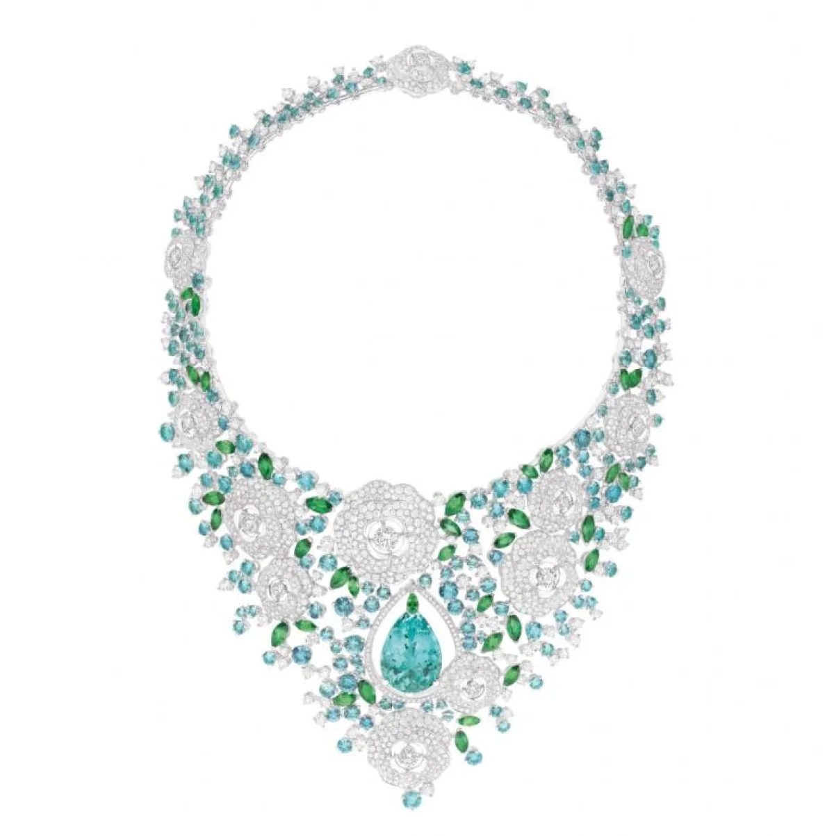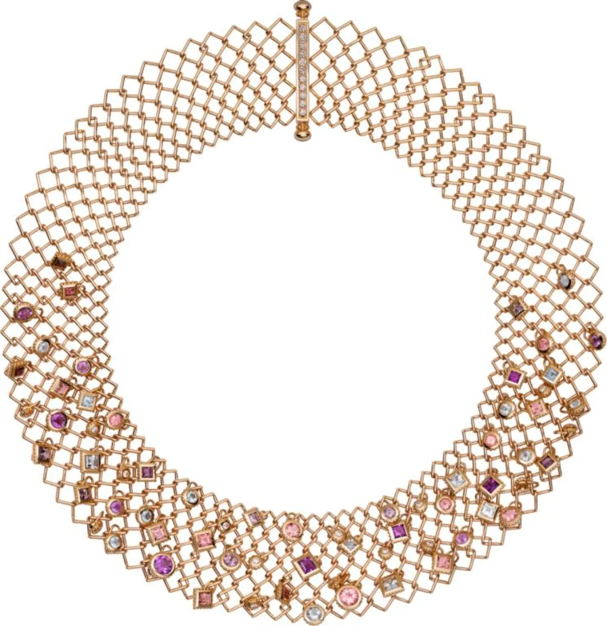 وجميع هذه العقود قصيرة تلتف حول الرقبة، وتتدلى بطريقة لافتة على منطقة الصدر، وقد تنوعت من ناحية تصاميمها وألوان الأحجار المرصعة بها، ومنها عقد بألوان قوس قزح اخترناه من دار "شوبارد" Chopard من مجموعة "هوت جويليري" Haute Jouaillerie، وعقد من "شانيل" Chanel من مجموعة "جاردان دو كاميليا" Jardin de Camelias المرصع بالماس وبأحجار باللونين الأزرق والأخضر. وعقد ذو تصميم ملكي من "ديور فاين جويليري" Dior Fine Jewelry من مجموعة "ديور أه فيرساي" Dior A Versailles، وعقد من "بولغاري" Bulgari ذو تصميم لافت مستوحًى من الورود، من مجموعة "ايتاليان غاردنز" Italian Gardens، وعقد لافت ذو تصميم يجمع بين العصرية والفخامة من "كارتييه" Cartier، من مجموعة "نوفيل فاغ" Nouvelle Vague.