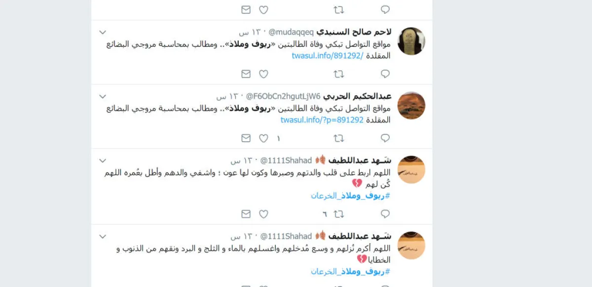 خيَّم الحزن والأسى على مستخدمي موقع التواصل الاجتماعي تويتر إثر وفاة طفلتين في الرياض أثناء وجودهما برفقة الخادمة بسبب تماس كهربائي، نتج عن إحدى التوصيلات الكهربائية المغشوشة، فيما يرقد بعض أفراد أسرتهما في المستشفى بسبب إصابتهم كذلك.