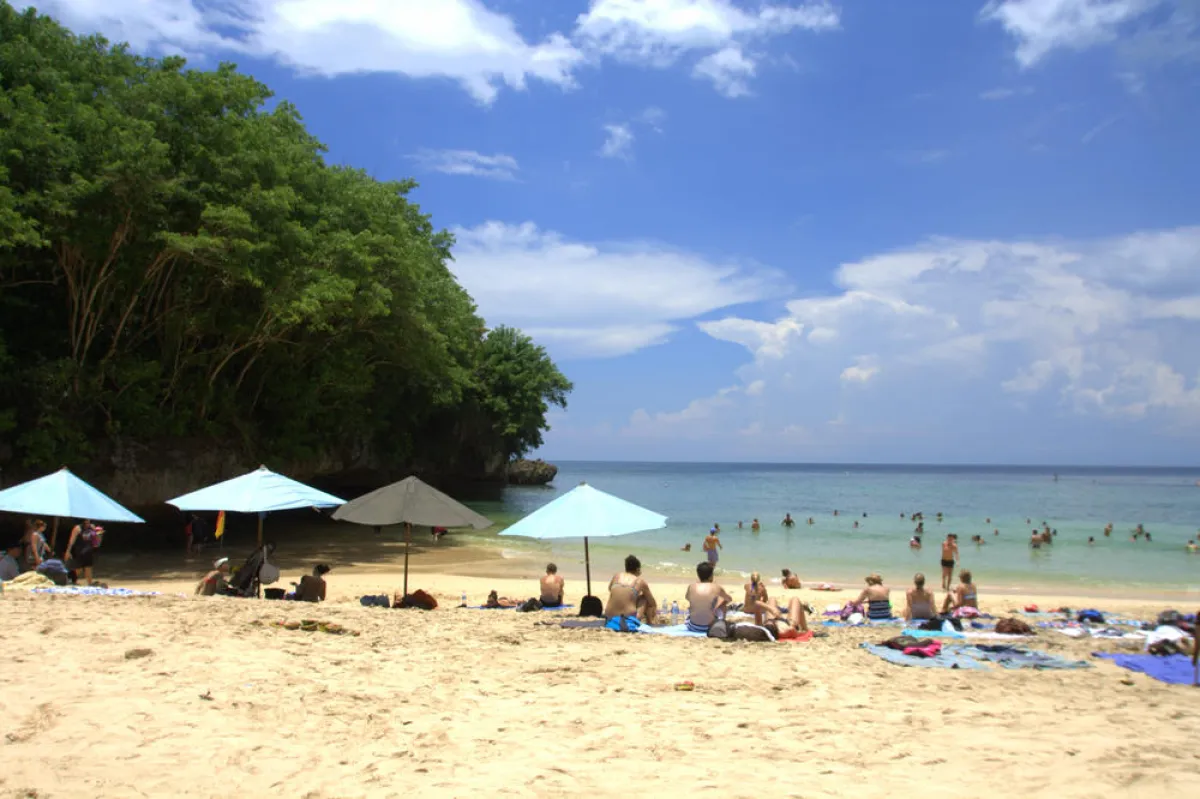 شاطئ "نوسا دوا" يستقطب العائلات وعشاق السباحة، نظرًا لانخفاض التيارات والأمواج