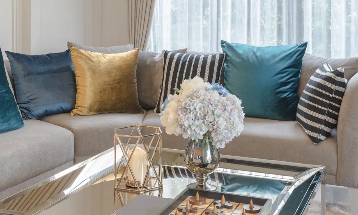 تُرتّب الوسائد على الصوفا، وفق الترتيب الآتي: