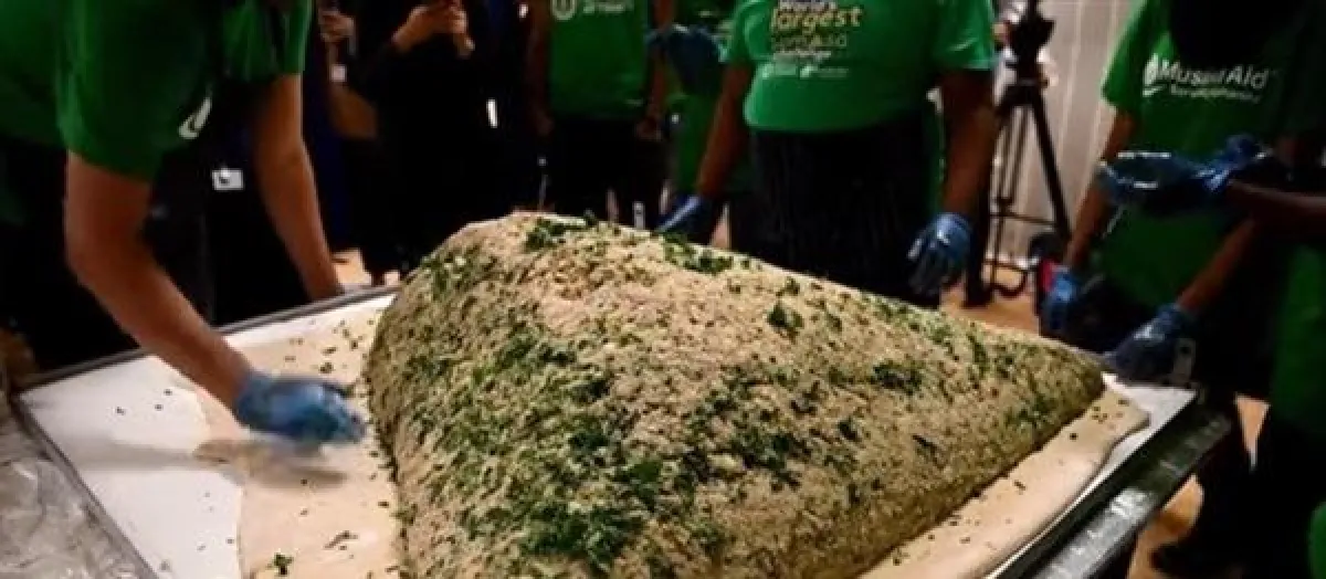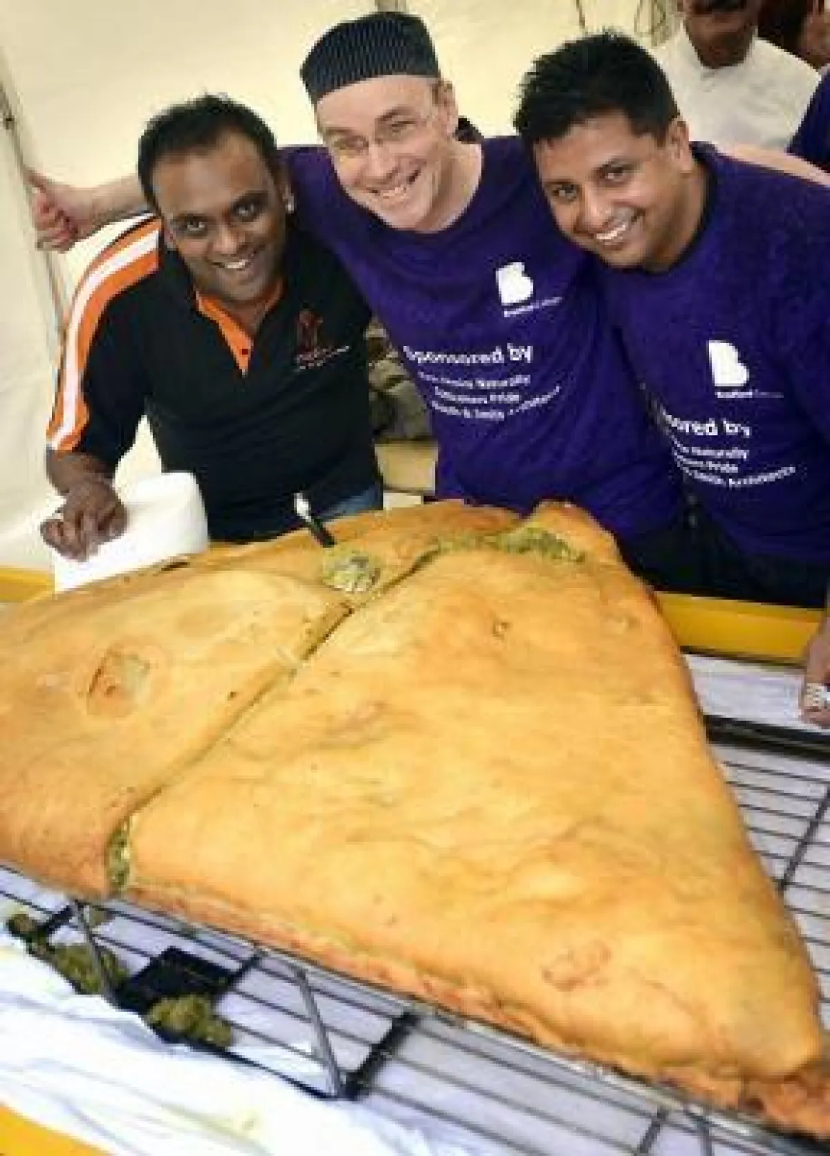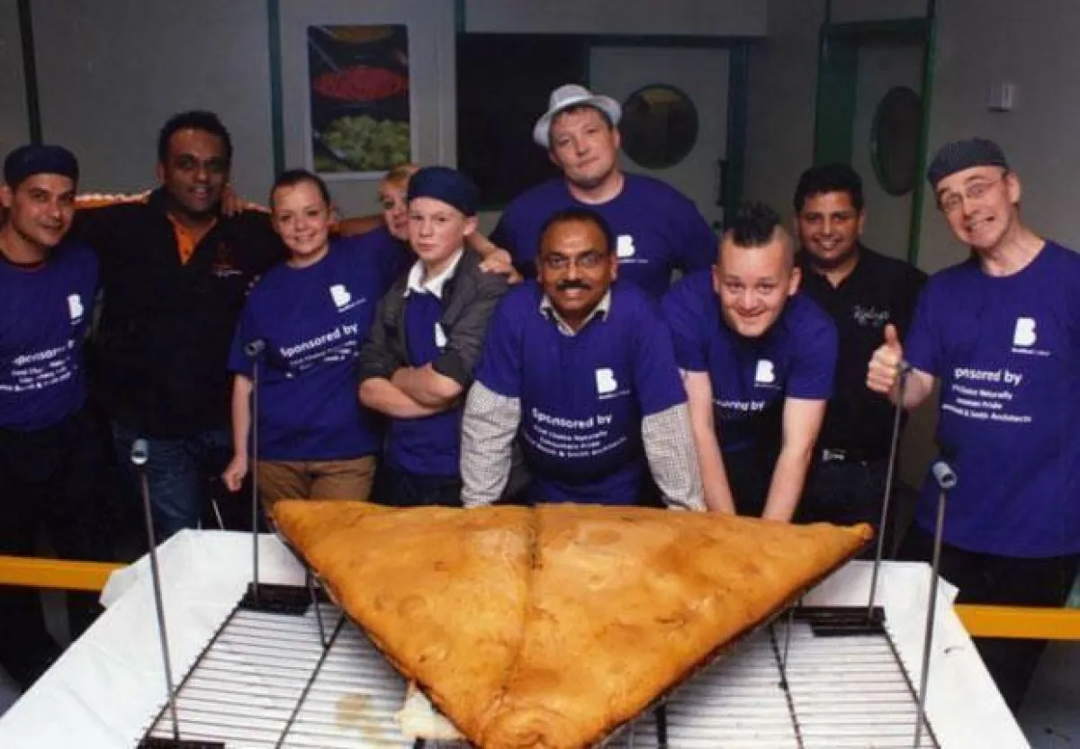 في لندن حطم الرقم القياسي لأكبر فطيرة سمبوسة في العالم، وهي فطيرة مثلثة تزن 153.1 كيلوغراماً.