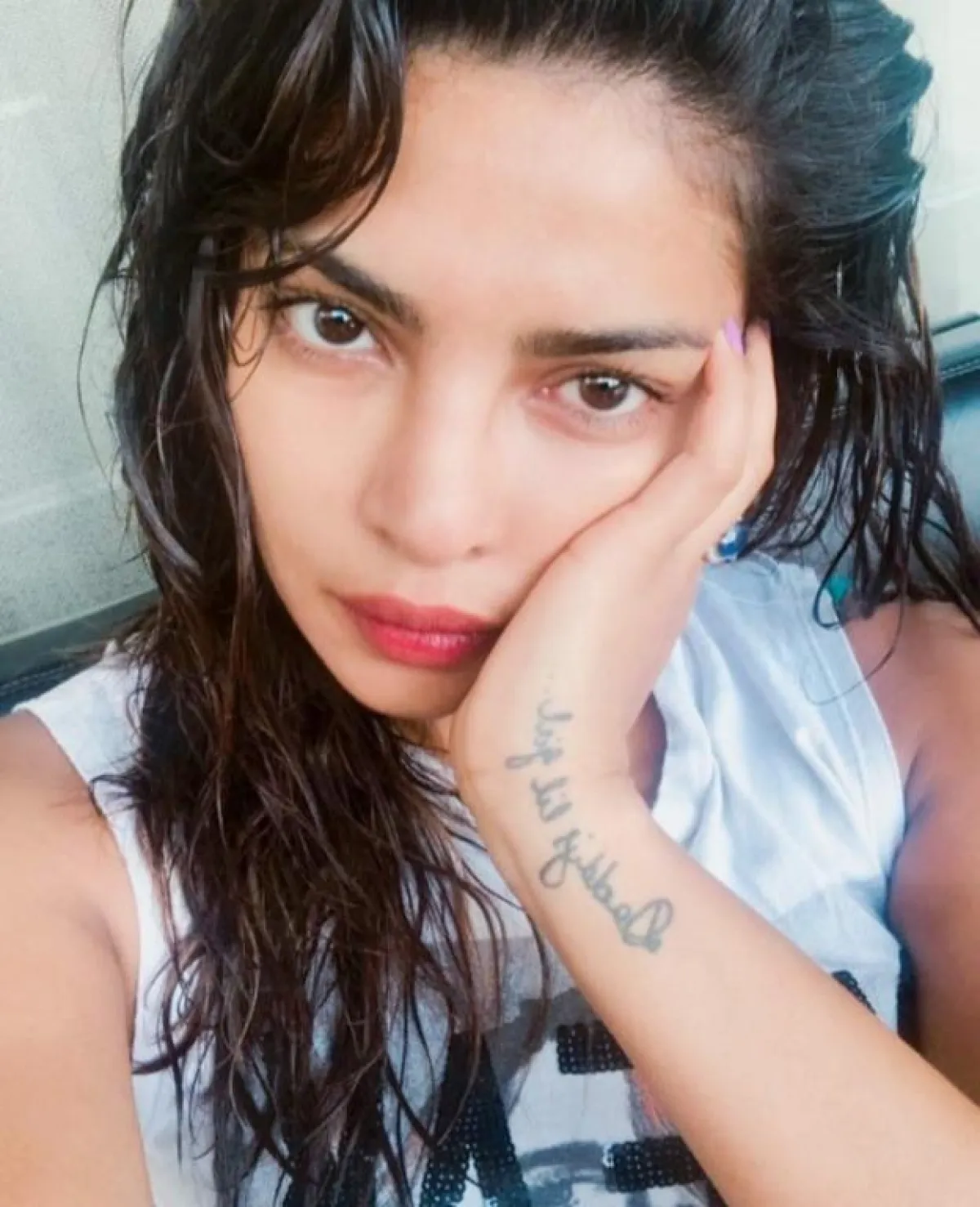 يُذكر أنّ بريانكا وشمت على معصمها عبارة عن حبها لوالدها الراحل.
