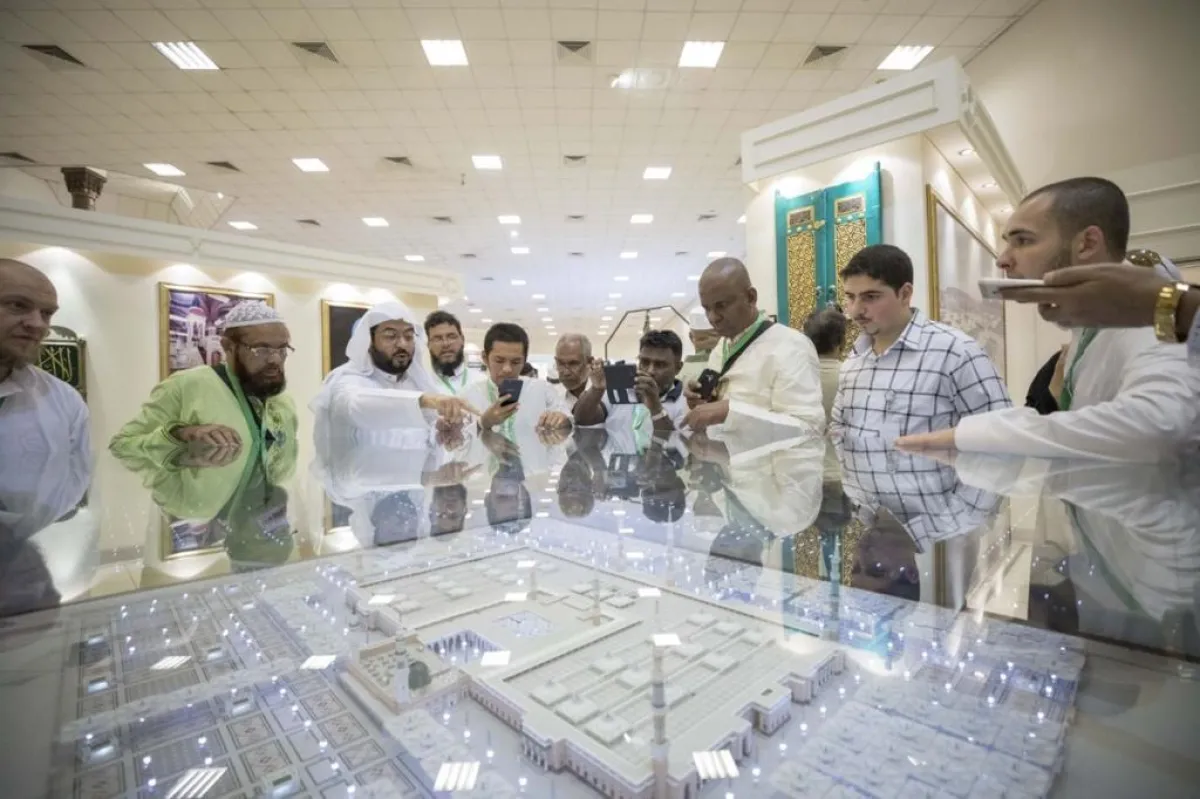 وتجول الحجاج في أقسام المجمع ومنها قسم الحزام، وقسم خياطة الثوب، وقسم المصبغة، وقسم الطباعة، وقسم النسيج الآلي، وقسم النسيج اليدوي، وقسم المختبر، والتقطت الصور التذكارية في كل أقسام المجمع.