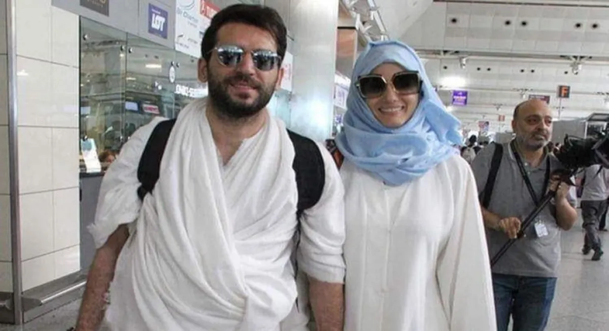 نشرت وسائل إعلام تركية صوراً للممثل التركي مراد يلديرم وزوجته ملكة جمال المغرب إيمان الباني، قبل توجههما للمملكة لأداء فريضة الحج.
