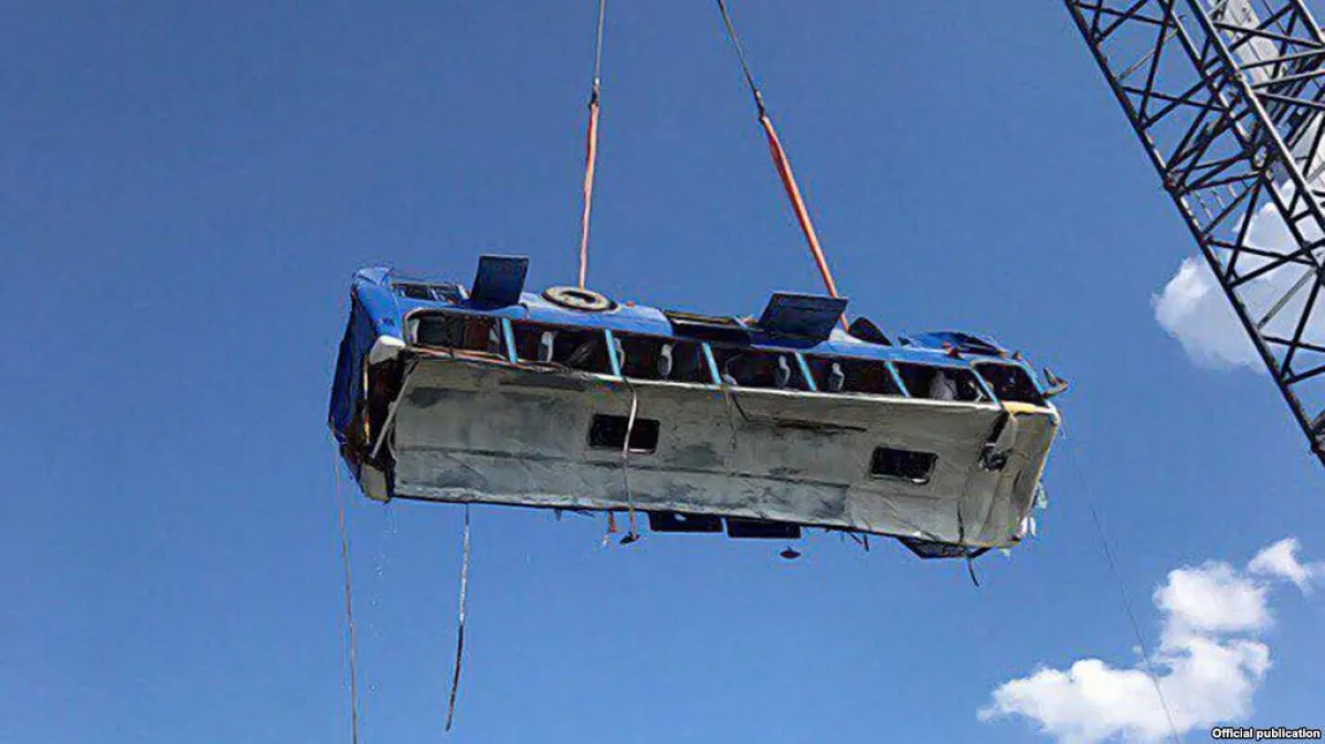 ونقلت وكالة «إنترفاكس» عن وزارة الطوارئ، أن ثمانية آخرين أصيبوا، بينهم خمسة في حالة خطيرة، من بين 50 راكبًا كانوا يستقلون الحافلة التي سقطت من رصيف بحري، يبلغ ارتفاعه عدة أمتار، في مرفأ لشحن النفط على ساحل البحر الأسود.