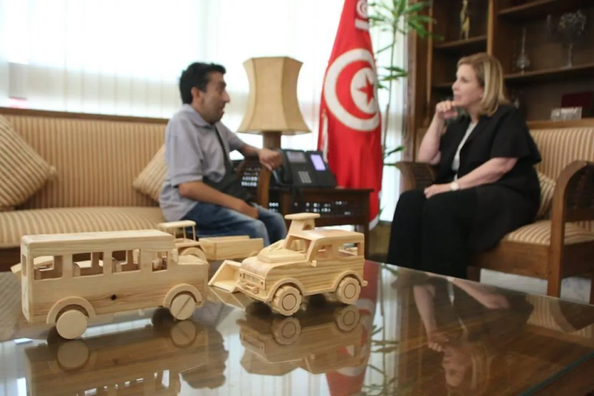 ولما علمت سلمى اللومي وزيرة السّياحة والصّناعات التقليدية بأمره استقبلته في مكتبها لتشجيعه وحثته على المشاركة في معارض الصناعات التقليدية لترويج إنتاجه، كما تم اقتناء بعض أعماله لتزيين الوزارة تشجيعاً له.