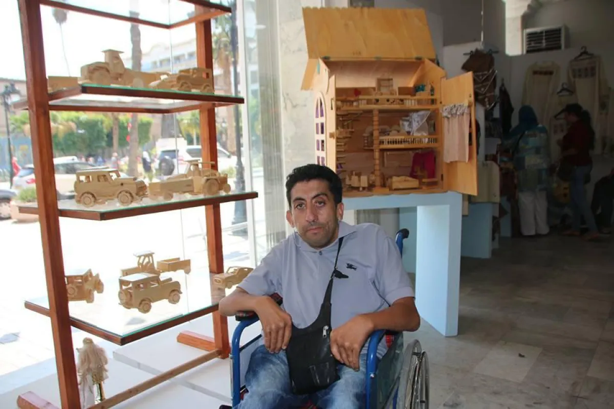 لم يستسلم لإعاقته بل تحداها ولم يمدّ يده لأحد بل عوّل على نفسه لكسب رزقه، ولأن منطقته هي منطقة غابات فقد أخذ يصنع من خشب الأشجار تحفاً فنية جميلة يصنعها بيديه ويبيعها.