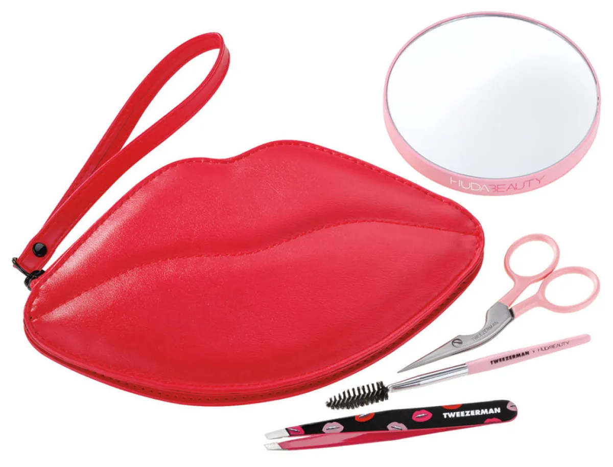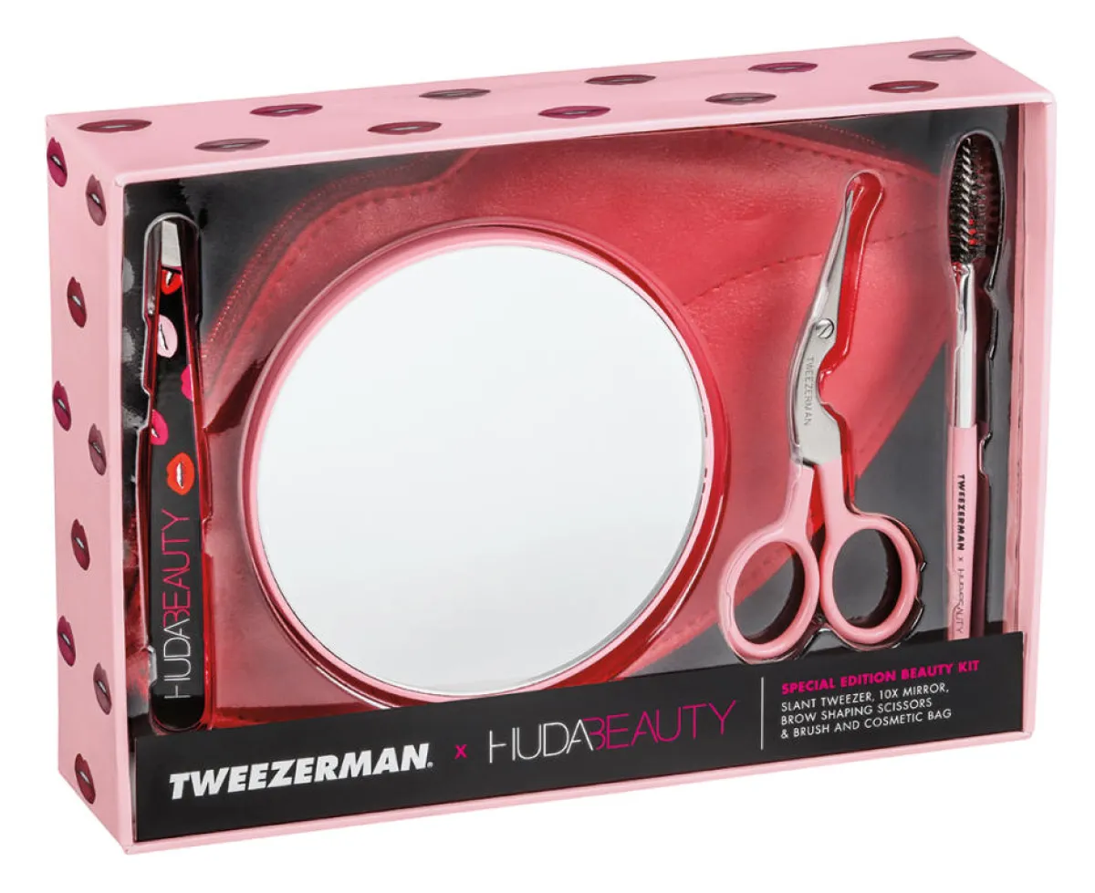 من منا لا تحب مستحضرات خبيرة التجميل العالمية هدى قطان!! تعودنا منها على كل ما هو جميل ومميز. فللحصول على حاجبين مثاليين، ما عليك سوى اتباع نصائح وإرشادات خبيرة ’ ملكة الحواجب‘. فبعد طول انتظار، تم توقيع الشراكة بين ’ تويزرمان‘و’هدى بيوتي‘ لمساعدتك في الحصول على حاجبين مثاليين مرسومين بدقة الخبراء. وتضم مجموعة الجمال الخاصة 4 من الأدوات المفضلة لدى خبيرة التجميل - ملقط الحواجب ذو الرأس المائل، ومرآة تكبير 10 أضعاف، ومقص وفرشاة لتشذيب الحاجبين، وحقيبة شكل الشفاه المميزة لعلامة ’هدى بيوتي‘ التي تضم الأدوات المذكورة.