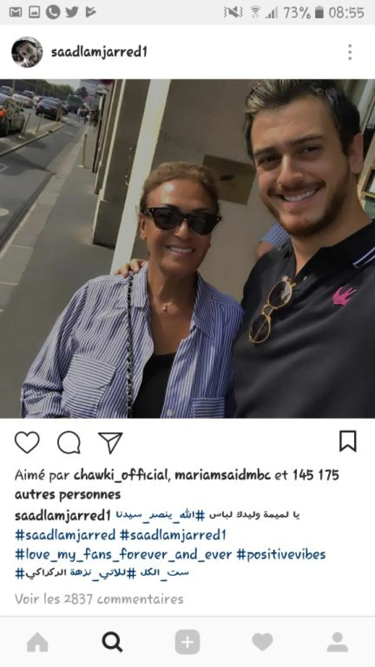 شارك الفنان سعد لمجرد جمهوره ومتابعيه على تطبيق "انستقرام" صورة له مع والدته، وأرفقها برسالة يطمئنها فيها،حيث قال: " يا لميمة وليدك لاباس" وهي كلمات إحدى أغانيه.