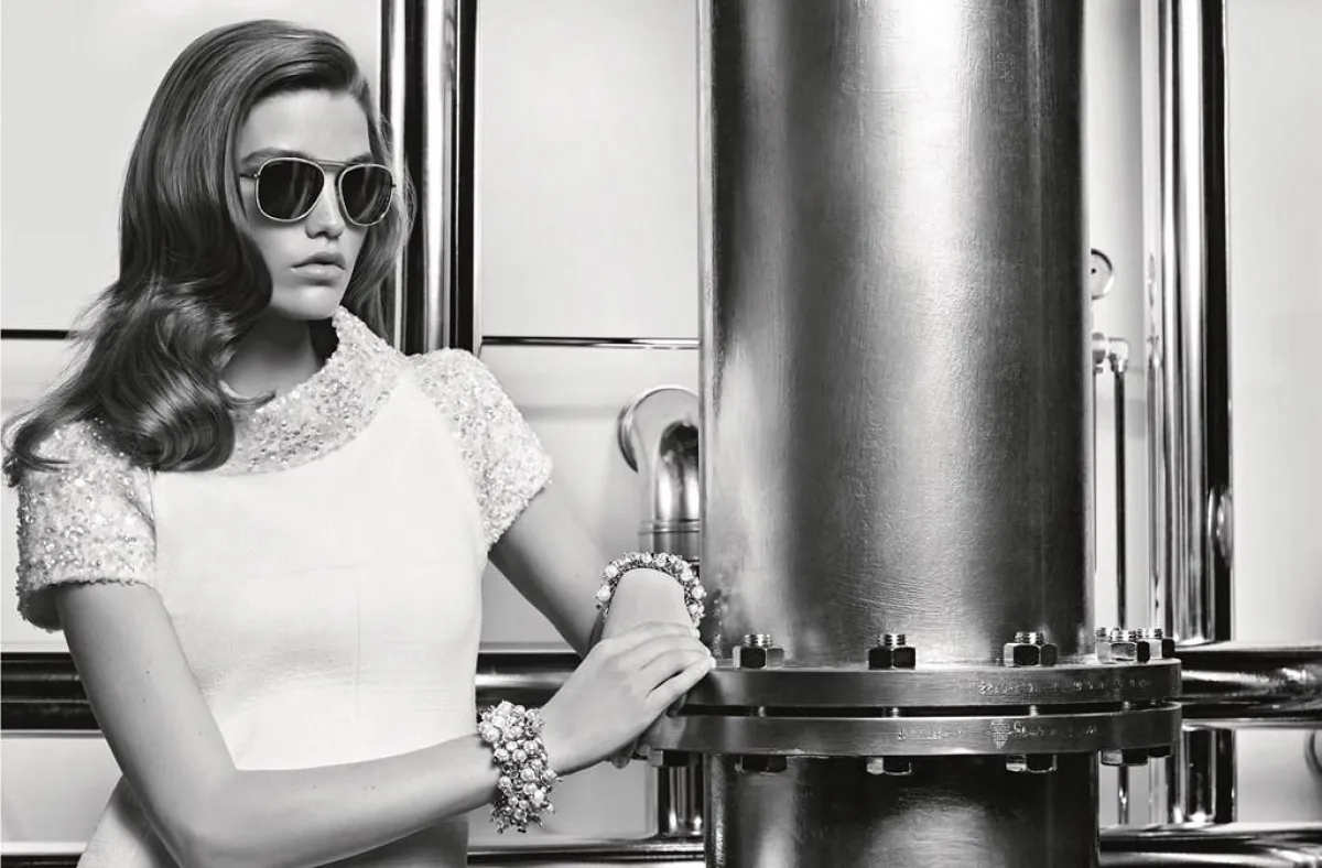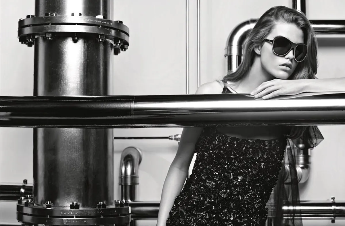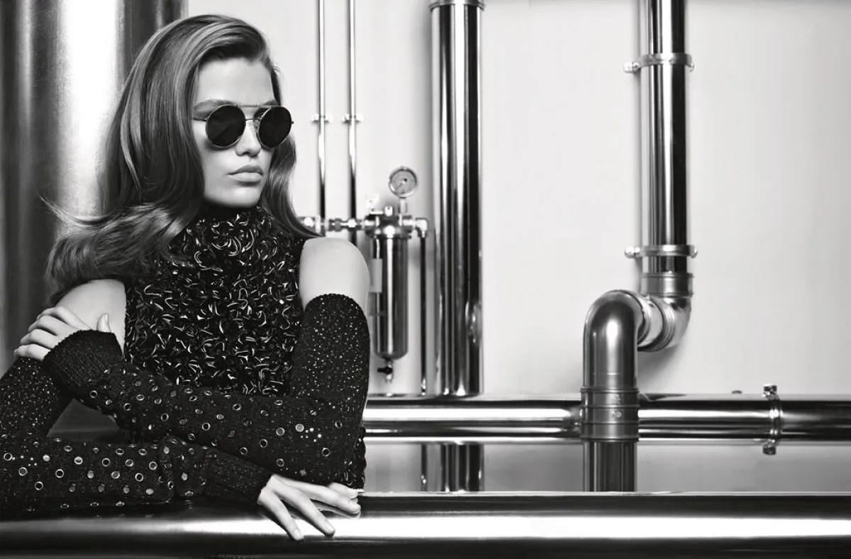 اختار كارل لاغرفيلد لحملة نظارات خريف-شتاء 2017/ 2018 من شانيل CHANEL التقاط صور باللونَين الأبيض والأسود للعارضة الهولندية لونا بيجل التي تعتمد أساليب وإطلالات من مجموعة الأزياء الجاهزة لخريف-شتاء 2017/ 2018 ضمن ديكور معدني مستوحى من القطاع الصناعي.