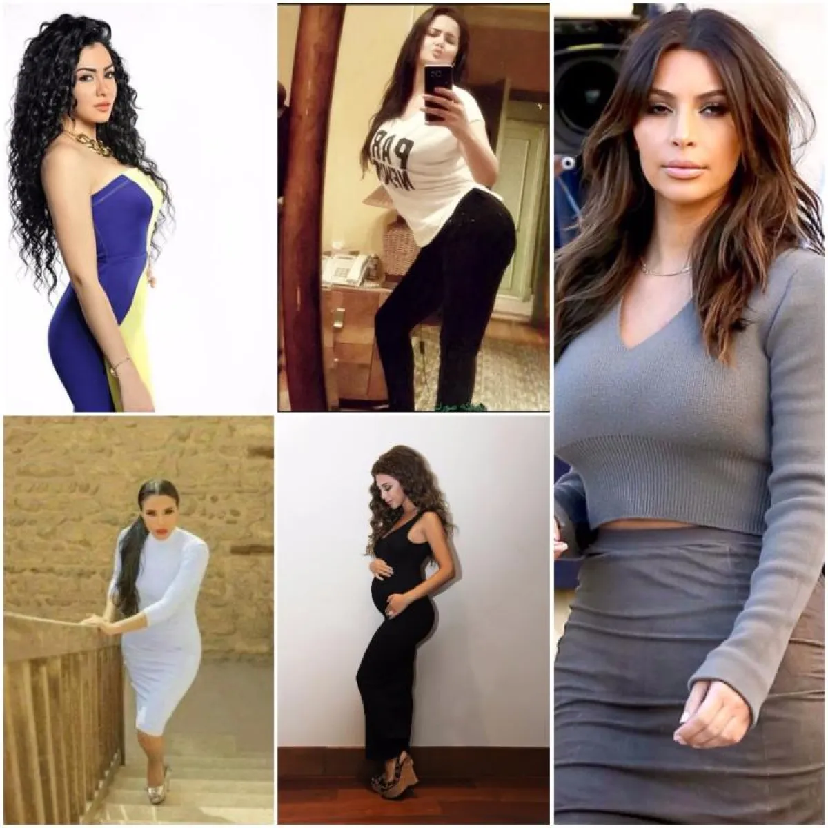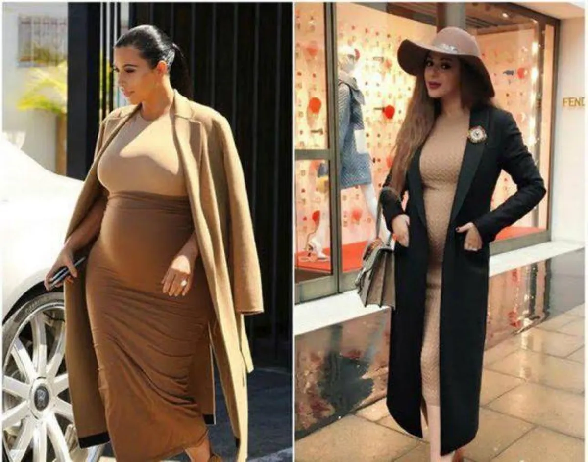 ميريام فارس من جانبها، لم تنجُ من فخ تقليد النجمة العالمية، وذلك خلال فترة حملها حيث ظهرت بلوك، يشبه تمامًا ذلك الذي اعتادت كيم الظهور به خلال فترة حملها .
