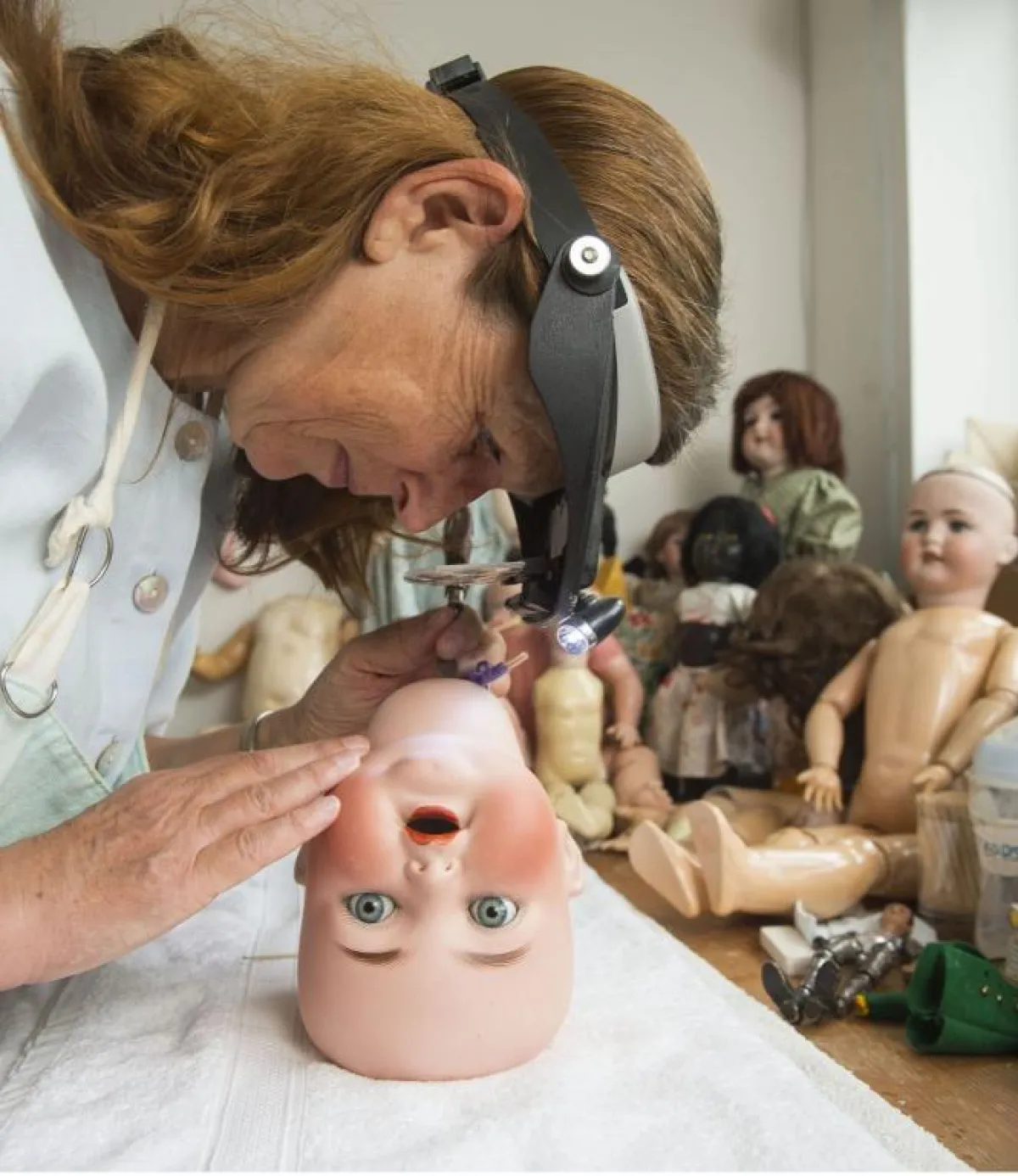 إذا كنتِ تعتقدين أن المراكز الصحية لديها قائمة انتظار طويلة، فإن مرضى «فرانسيس مايو» غير العاديين، يمكن أن تصل فترة انتظارهم إلى 18 شهرًا للإصلاح، وذلك لأن «فرانسيس» تعدّ واحدة فقط من خبراء إصلاح الدمى، ومن القلة المتبقين في البلاد، والناس يسعون في طلبها من جميع أنحاء المملكة المتحدة للحصول على خدماتها. وقد توقفت السيدة مايو، 59 عامًا، مؤخرًا عن أخذ طلبات جديدة؛ حتى تتمكن من إصلاح كوم دمى الأطفال المكسورة لديها. وتدير «فرانسيس» مستشفى Dartington Dolls لترميم الألعاب من غرفة في منزلها في قرية بالقرب من توتنيس، ديفون، وتواجه يوميًا تحديات من شأنها أن تصدم الجراحين ذوي الخبرة، من الجماجم المتصدعة، إلى العيون المفقودة، والبتر. تبدو الأرفف البشعة في ورشة عملها وكأنها من بيت رعب، مع صناديق بأطراف، ورؤوس ومقل عيون إضافية تبرز من كل زاوية، ولكنها في النهاية، وبقليل من الصبر، تعيد كل شيء إلى مكانه.