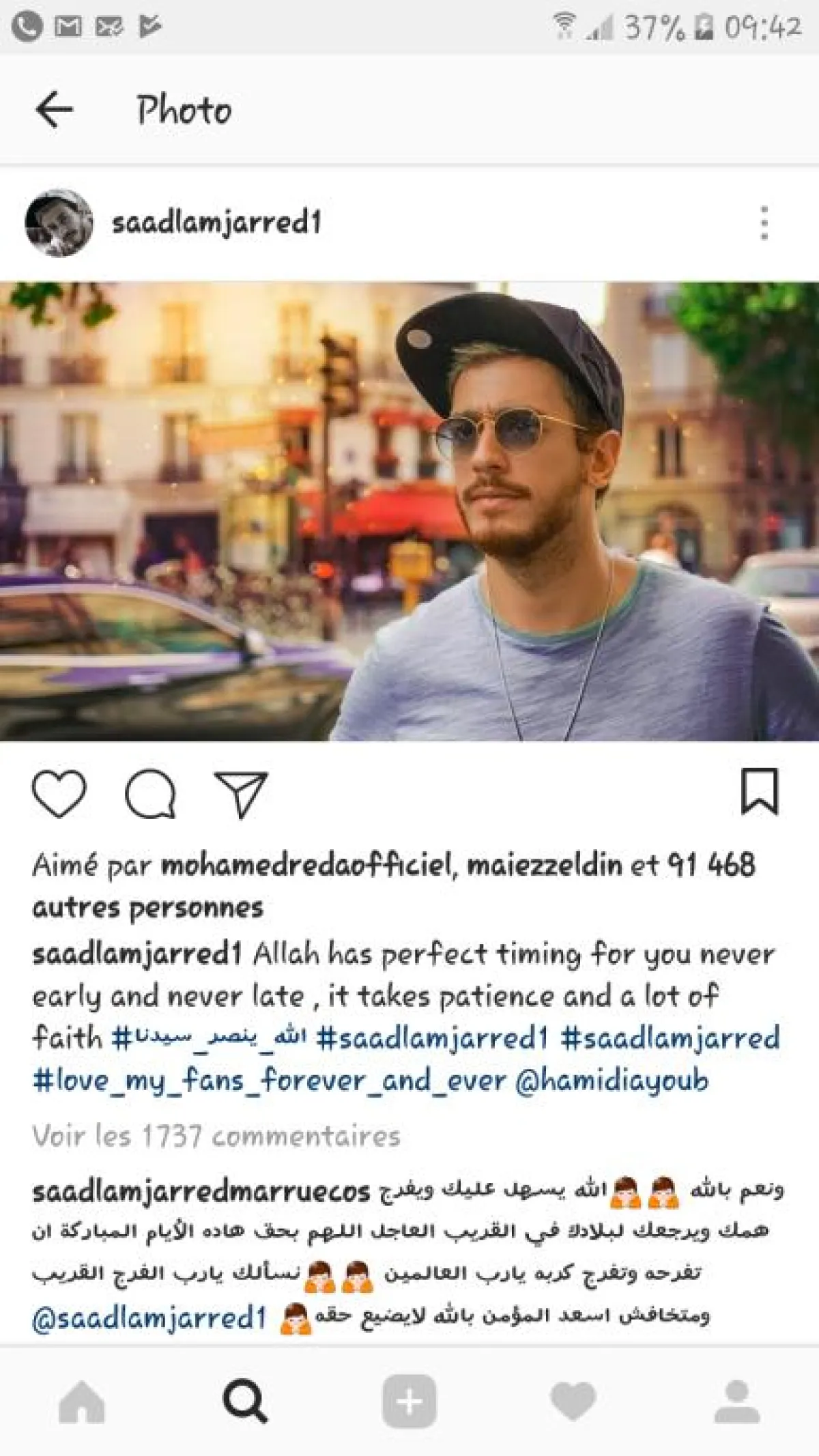 وتفاعل جمهور لمجرد مع مضمون التدوينة متمنين له قرب الفرج في إشارة إلى المحنة التي أرغمته على قضاء عيد الأضحى في باريس بعيد عن وطنه بسبب متابعته في قضية محاولة اغتصاب الفتاة الفرنسية.