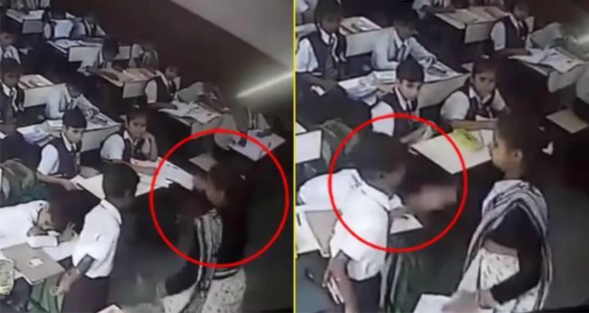 وقد وثّقت كاميرات المراقبة في صف في إحدى مدارس ولاية أوتار براديش الهندية الحادثة، ويُظهر مقطع الفيديو المعلمة وهي تصفع التلميذ 40 مرة في دقيقتين فقط، فيما كان يتوسل إليها لترحمه، وتستمر هي بالضرب من دون شفقة، إذ إنها لن تكن تعلم بوجود كاميرات في الصف.
