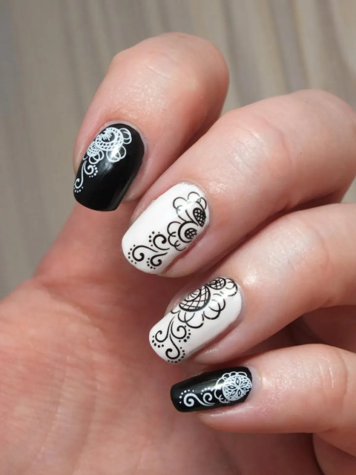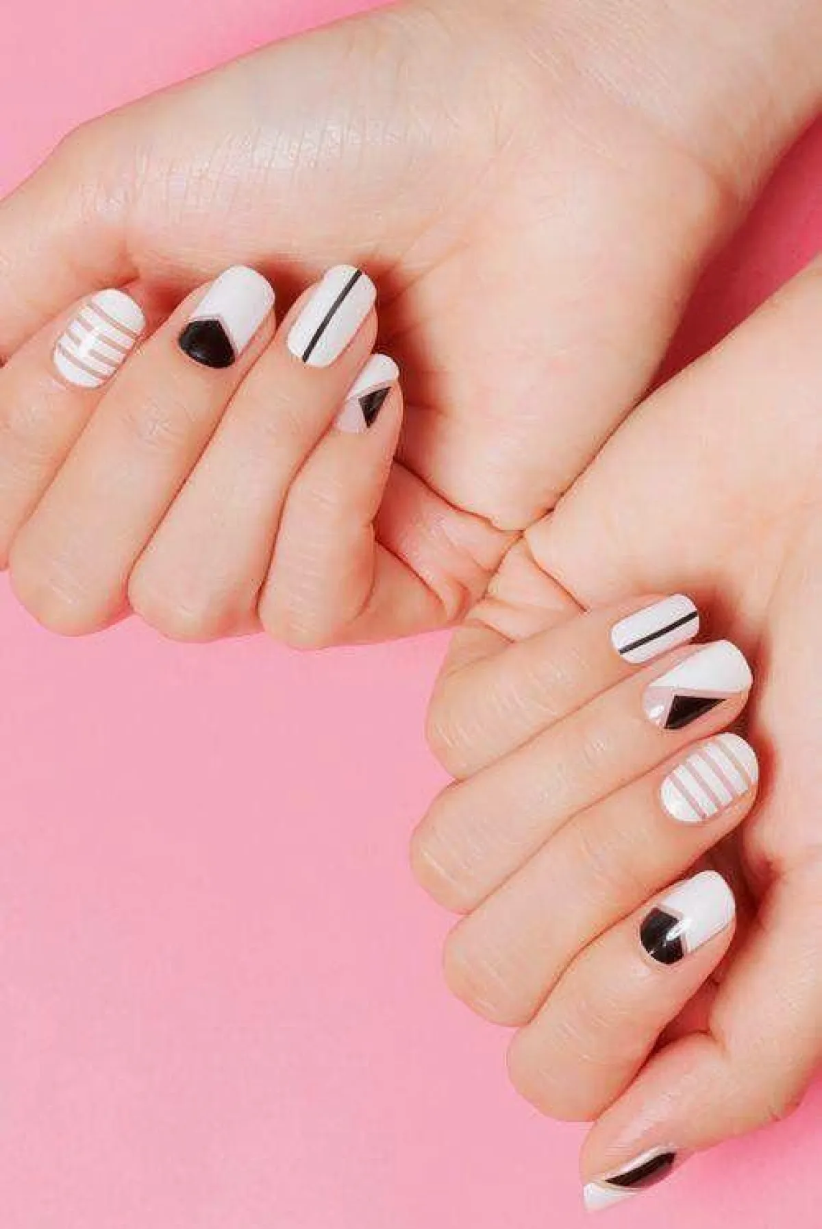 • كل ما عليك فعله هو وضع اللون البيج على أظافرك، ثم ضعي الأبيض والأسود على أطراف الأظافر بأشكال مختلفة.