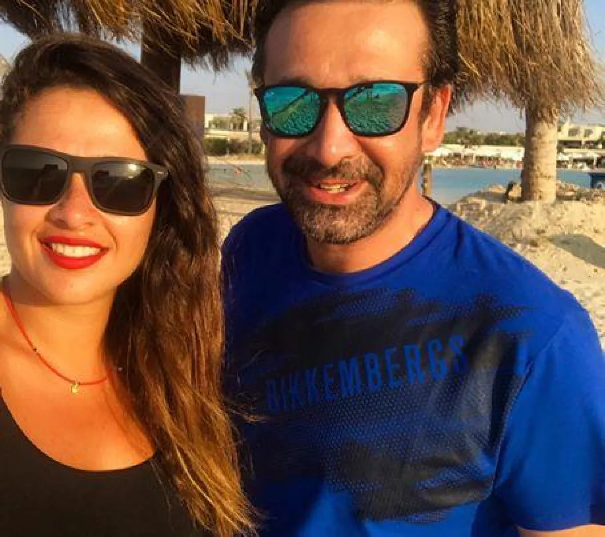 الفنانين كريم وياسمين وفي الوسط الطائرة