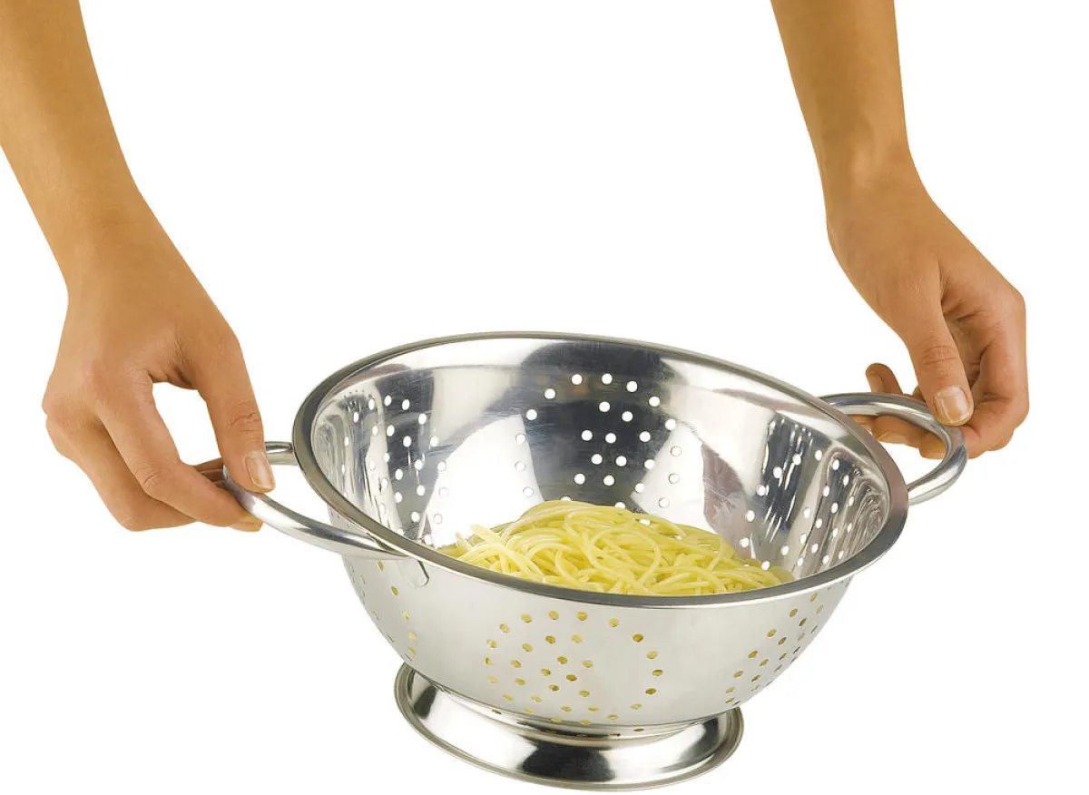 3. في حال لازمت الشوائب ثقوب المصفاة، هي تُنظّف بماء ساخن، مضاف إليه بضع قطرات من الخلّ الأبيض، مع الحرص على عدم تسخين الماء لدرجة الغليان. علمًا بأنّ المقابض المعدن يمكن أن تذوب من شدّة حرارة المياه.