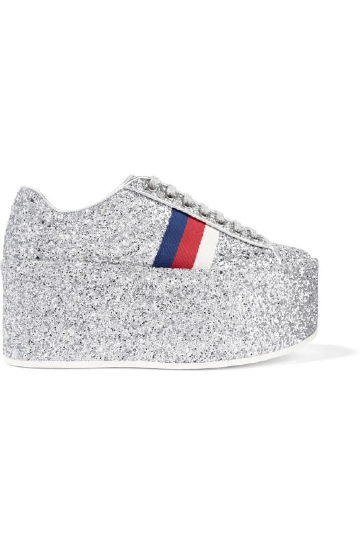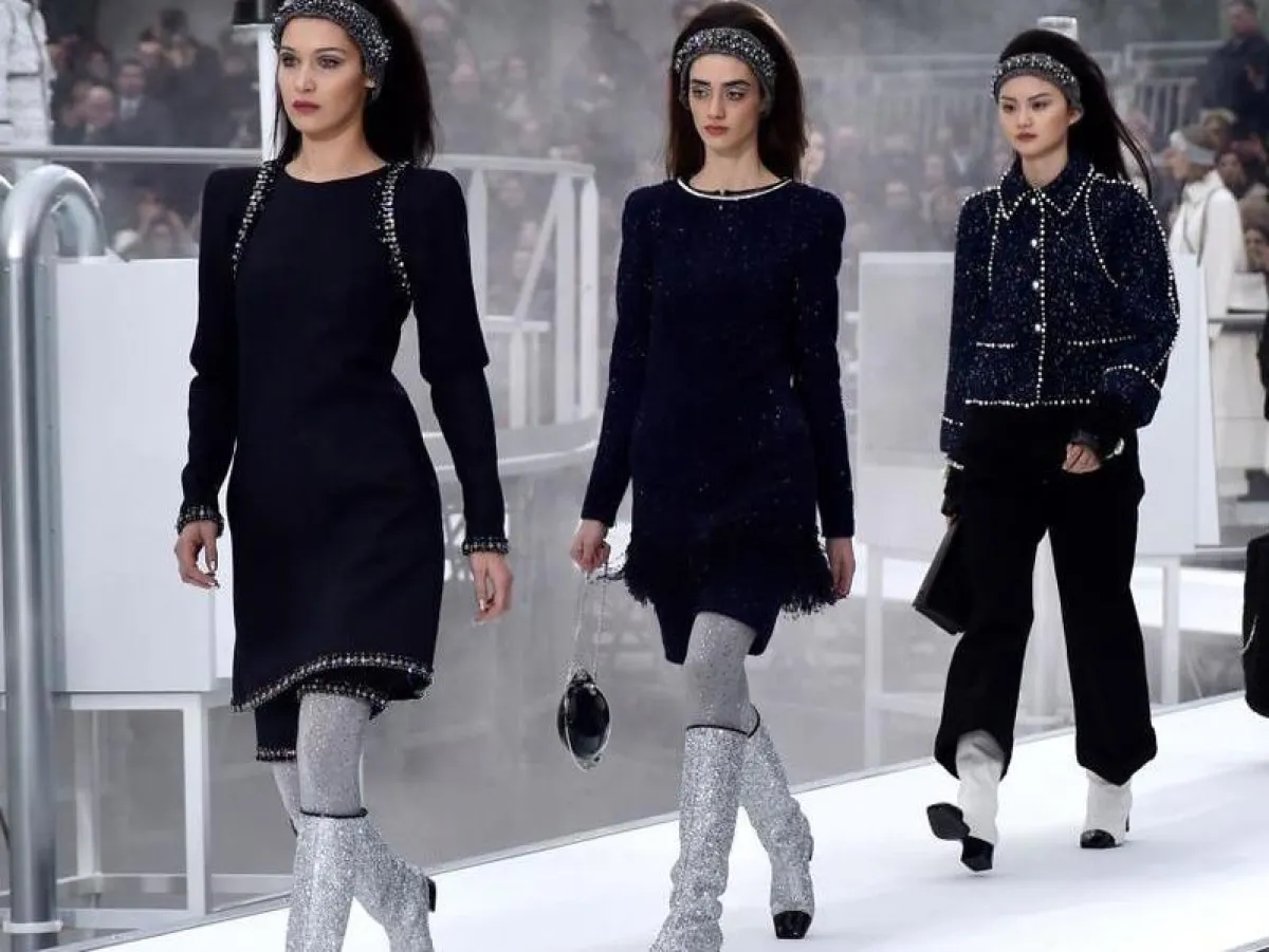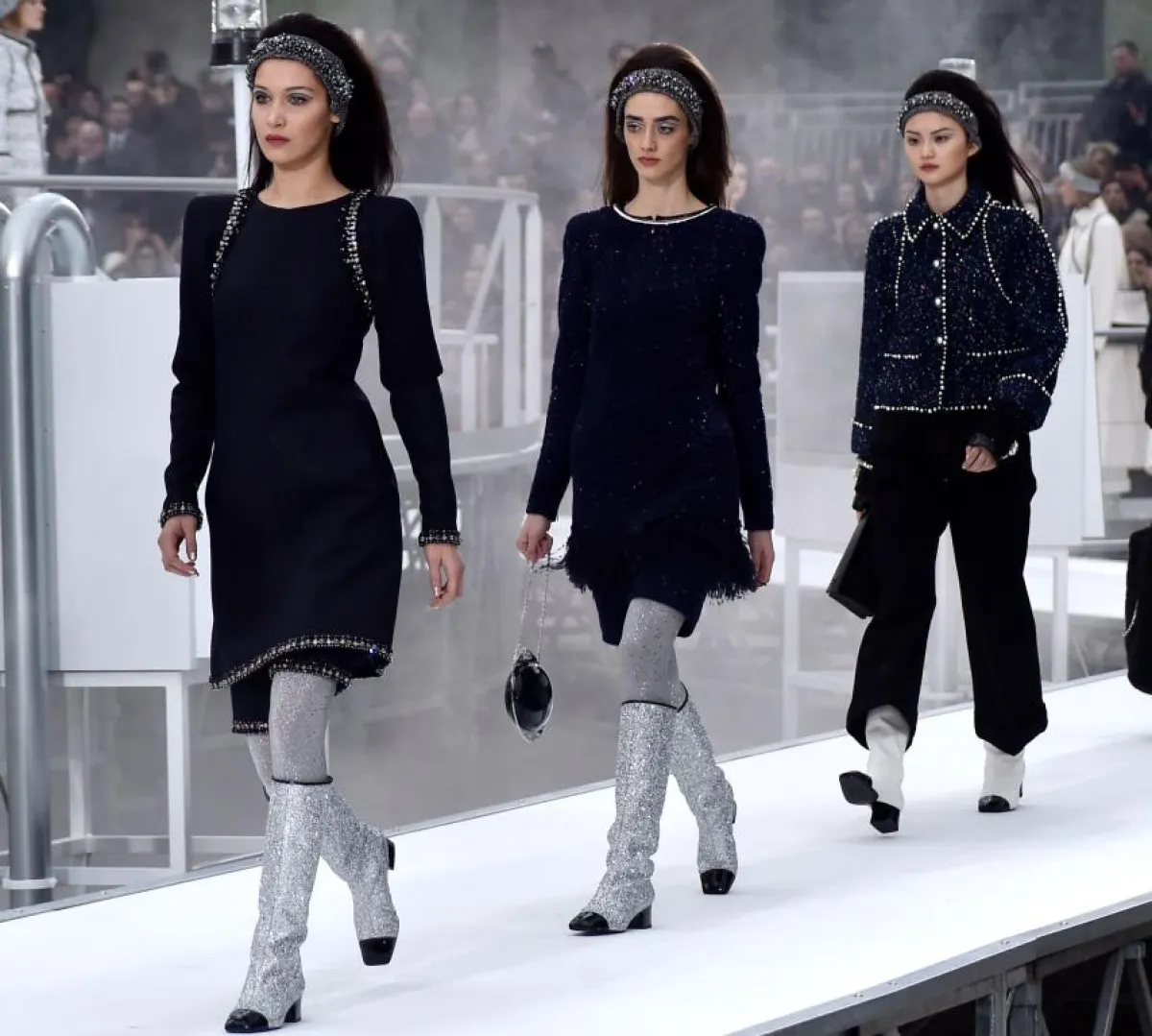 وقد ظهرت الأحذية البراقة في عروض الأزياء العالمية لخريف 2017، من بينها: سان لوران ، أوسكار دي لا رنتا، شانيل، أليس أند أوليفيا، Isabel Marant، وMissoni. وتنوعت ألوانها بين الأسود والفضي والبني والذهبي وغيرها، كما أتت بقصات وخامات متنوعة ومميزة، فمثلاً برزت أحذية الترتر البراقة طويلة الساق، التي رأيناها مزمومة ومروّسة من الأمام، لدى سان لوران، وأتت بكعبٍ صغير وعريض لدى شانيل.