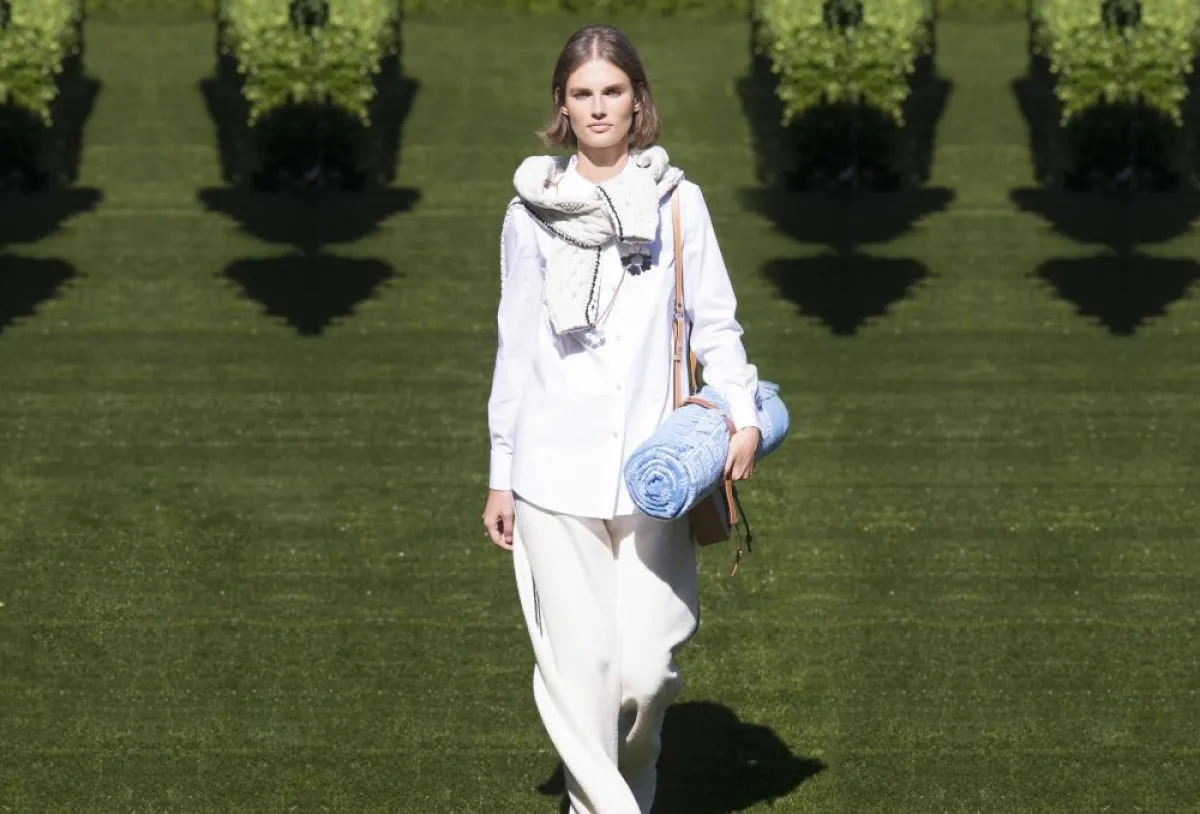 وفي عرضها غلبت أقمشة الموسلين المطبّعة، من وحي ألوان الطبيعة المنسجمة مع حقائب اليد الكبيرة الحجم.